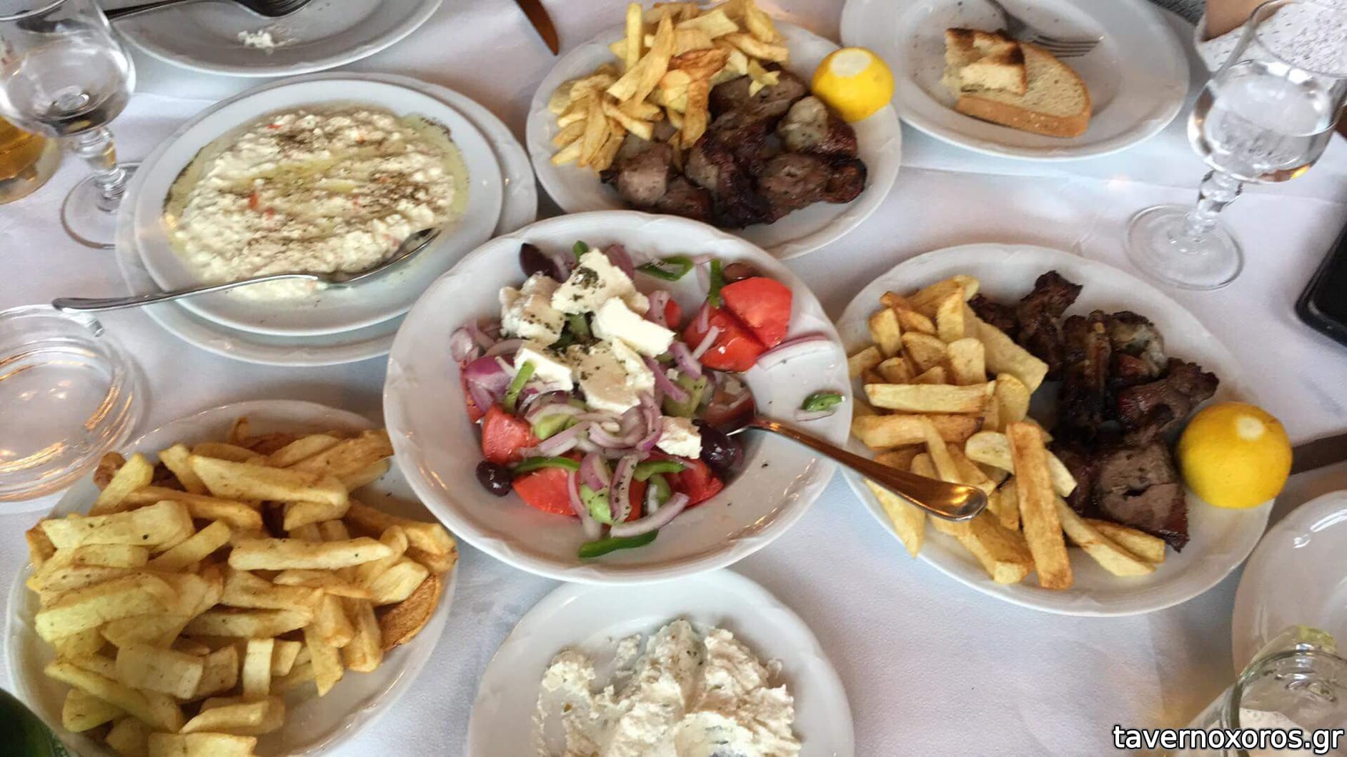 Πατάτες/Ψητή φέτα/Κοντοσούβλι/Χωριάτικη