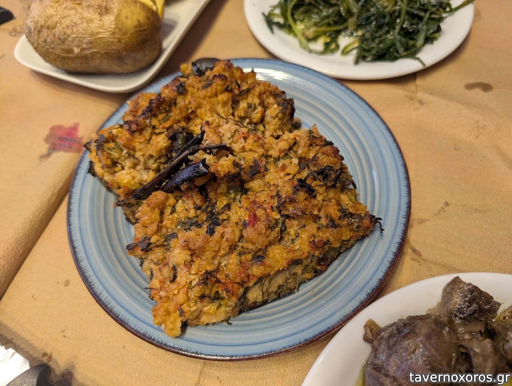 Η γεμιστή πατάτα ήταν καλοβρασμένη, η ποικιλία τυριών επίσης καλή. Ιδίως μου άρεσε το πικάντικο τυράκι. Το απάκι το εξαφάνισαν οι σύντροφοί μου σχεδόν αμέσως. Όντας ρέκτης των πιτών, η βοσκόπιτα μου άρεσε ιδιαιτέρως. Ο ντάκος ήταν τούμπανο και τον προτείνω δίχως δεύτερη σκέψη! Στην ουσία ήταν 3 μερίδες σε μία!