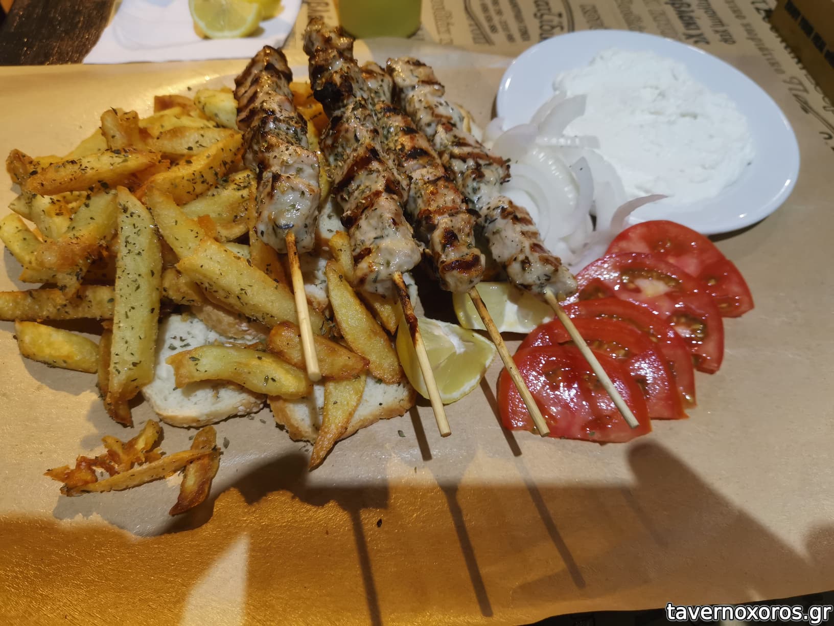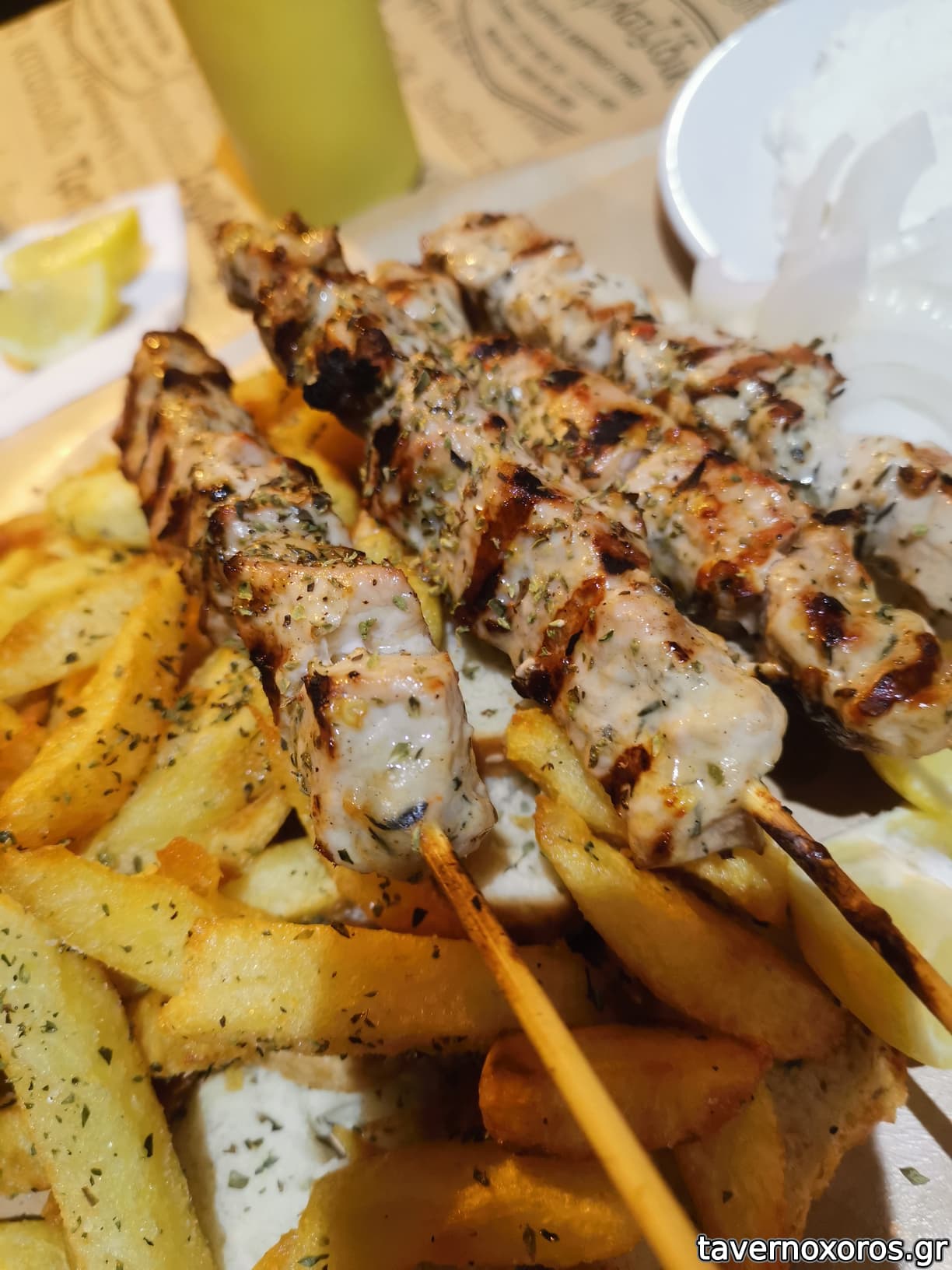 Σουβλάκια (χωρίς λίπος, μέτρια) & πατάτες (κακό λάδι, ψιλοχάλια)