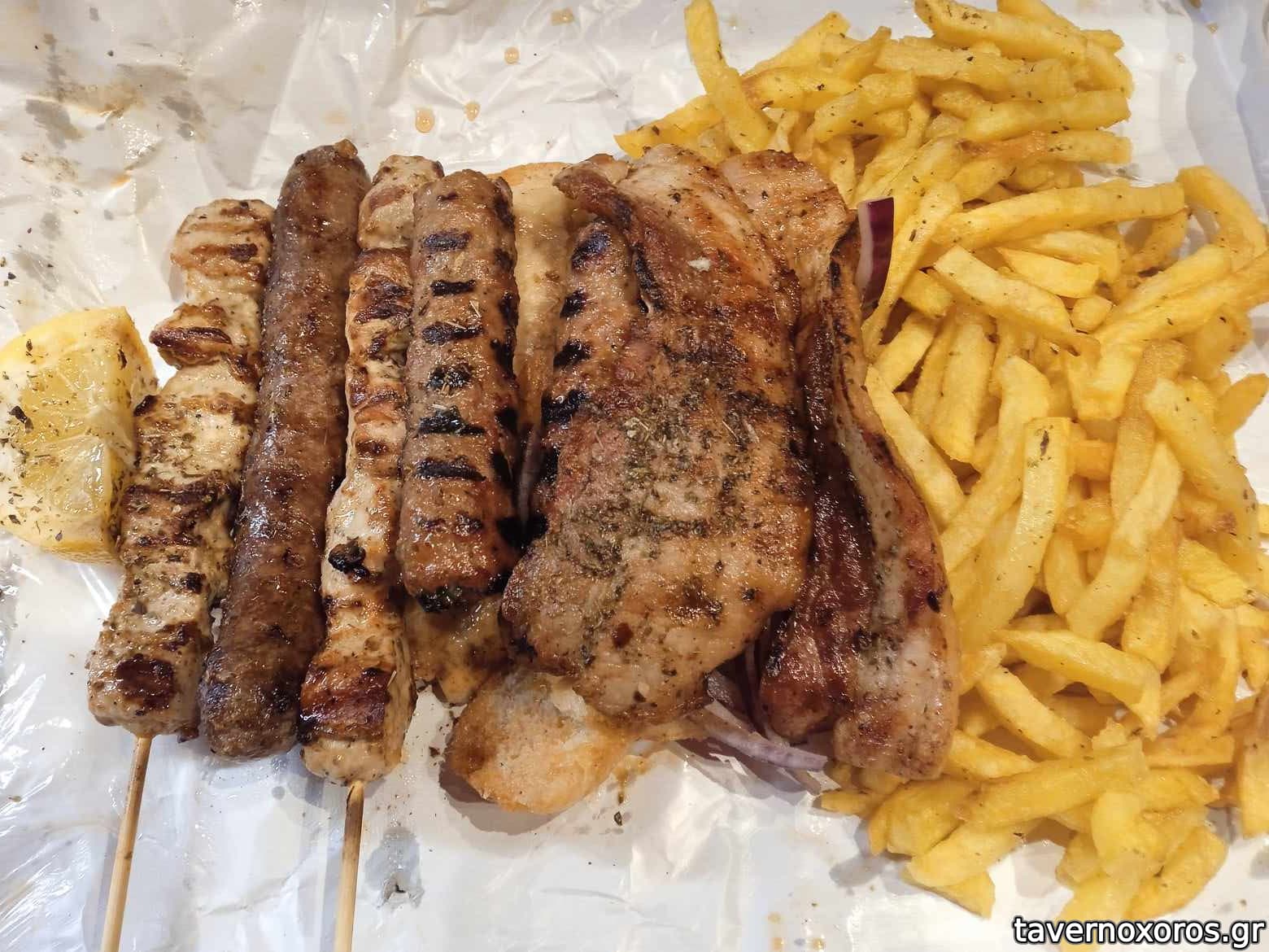 Σουβλάκια, σουτζουκάκια, πανσέτες, λουκάνικο, πατάτες