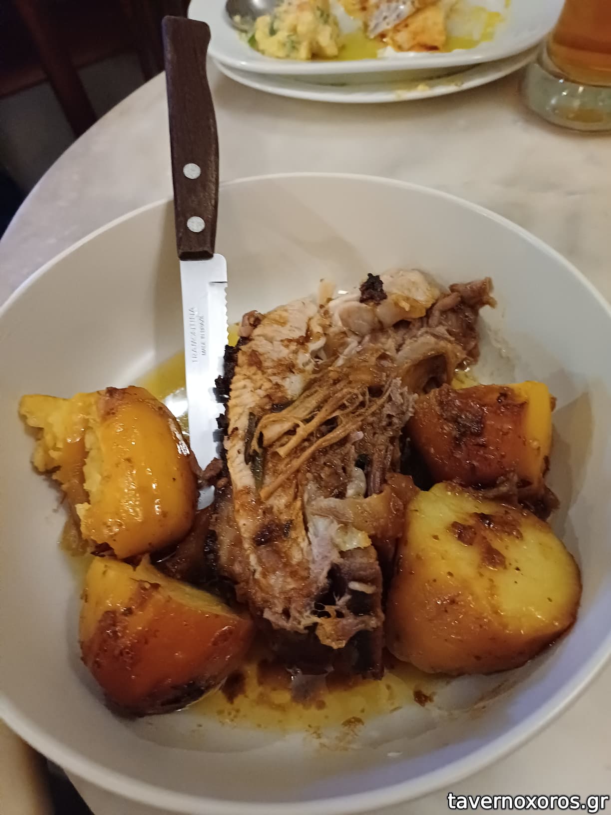 Κότσι στη γάστρα (μια χαρά, οι πατάτες εξαιρετικές)