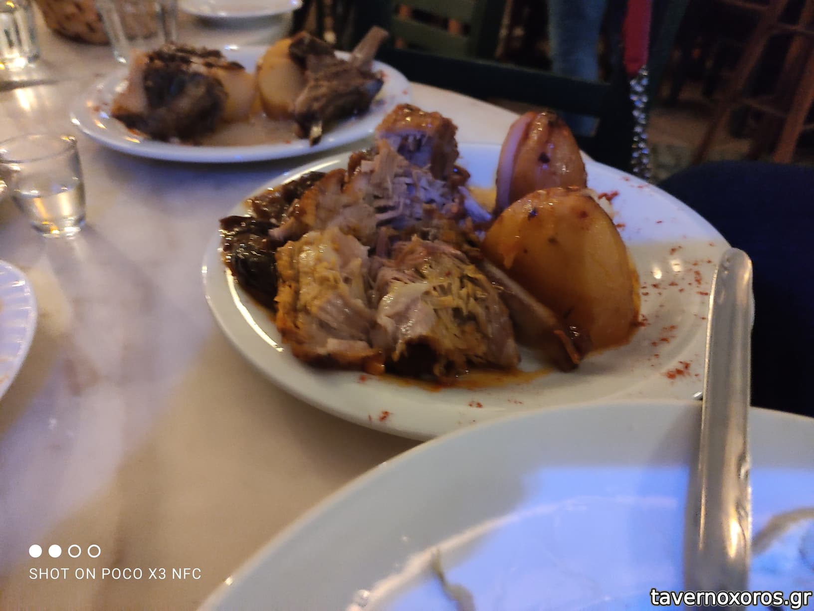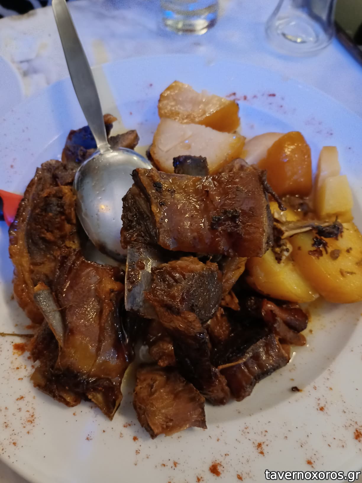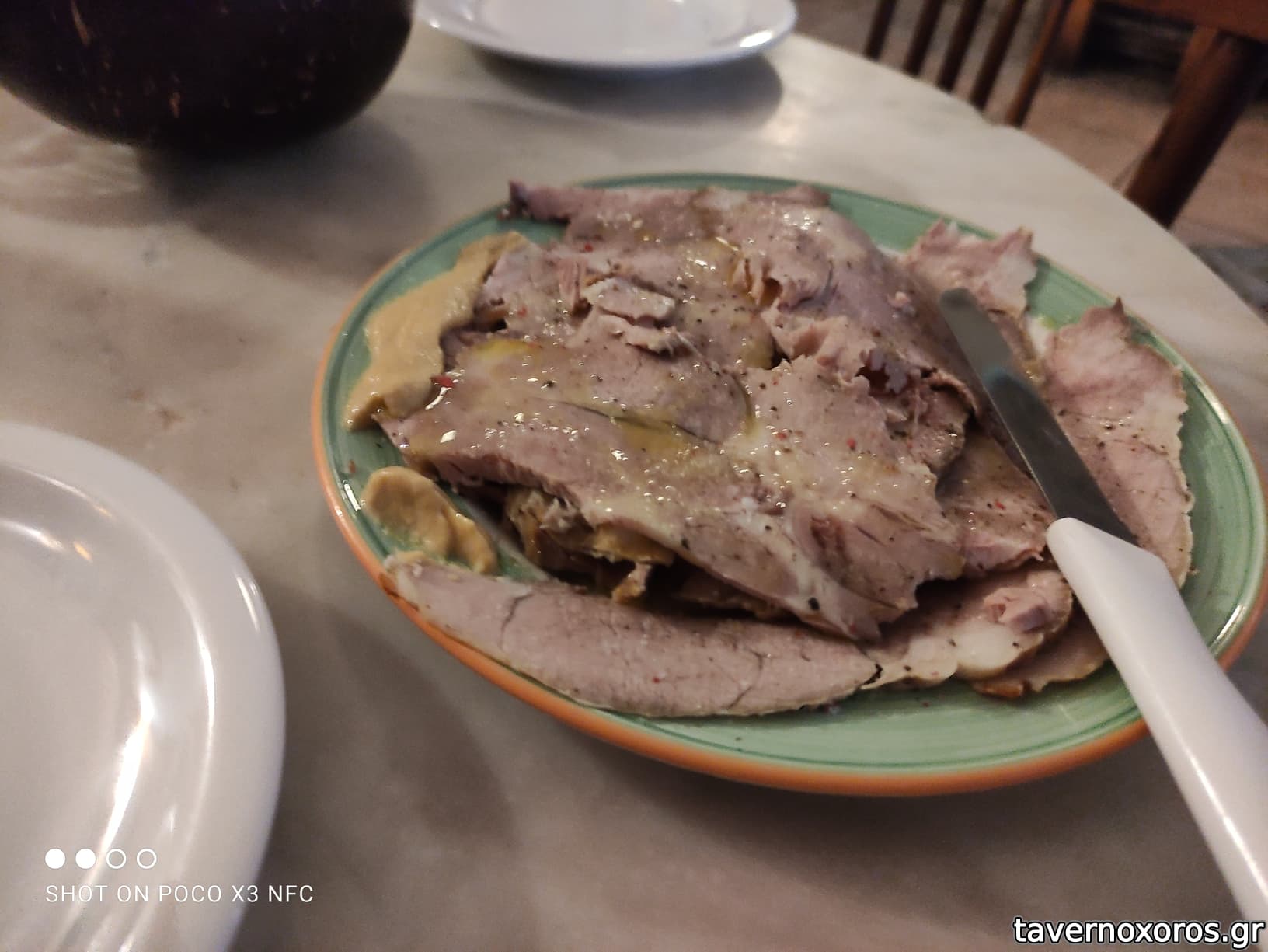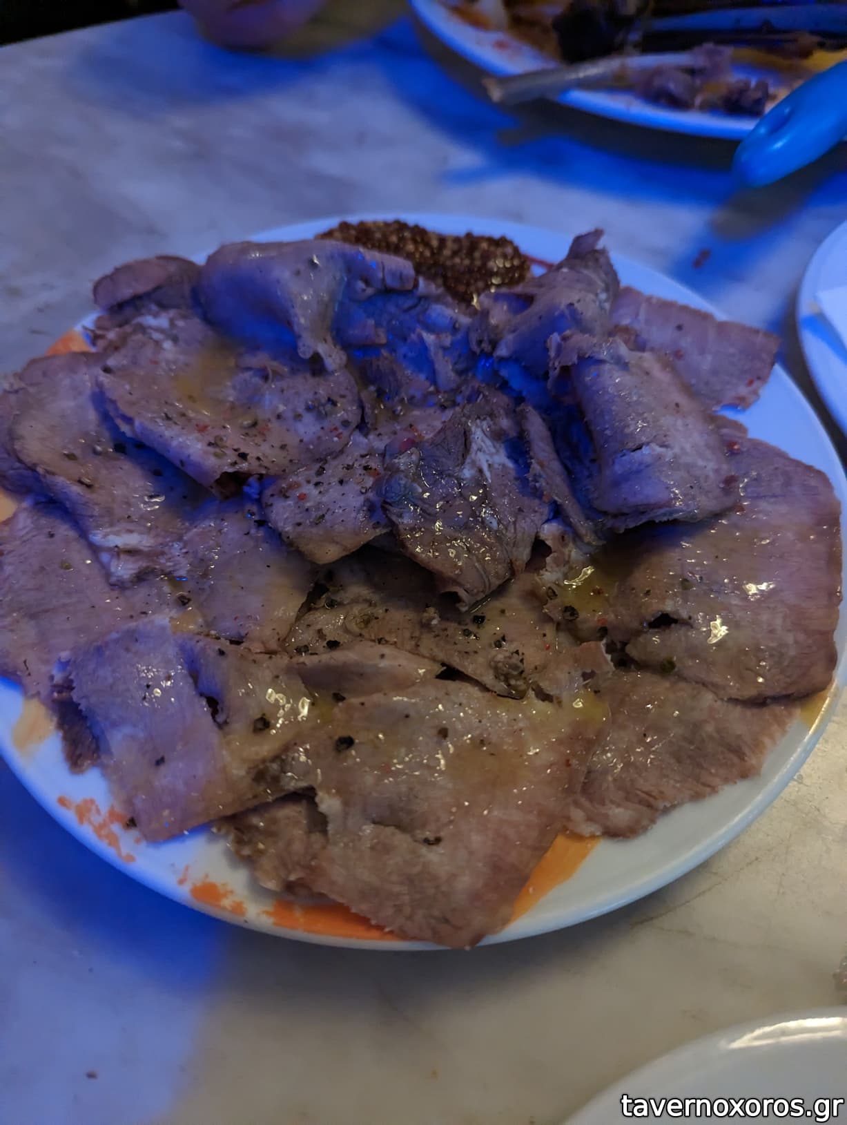 Ο κατάλογος ήταν μικρός, κάποια πράγματα είχαν φύγει από το μεσημέρι. Τα πήραμε σχεδόν όλα, αν όχι εντελώς όλα! Γλώσσα μοσχαρίσια πολύ καλή, στο Τουρλού δεν μου είχε αρέσει, αλλά εδώ μου άρεσε πολύ, λεπτές φέτες όπως την έφερε. Επίσης Μοσχαράκι με Χυλοπίτες κοκκινιστές, πολύ μαλακωμένο και γευστικό. Τέλος πήραμε και Αρνάκι με πατάτες, καλομαγειρεμένο, αλλά δύσκολα σημεία, κότσια και χόνδροι- ήθελα να το αποφύγω.