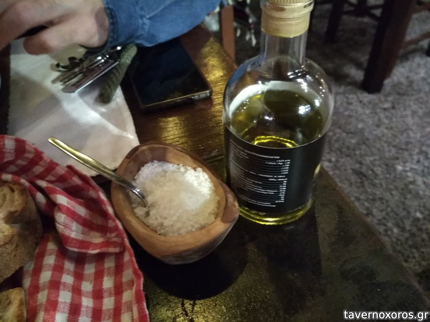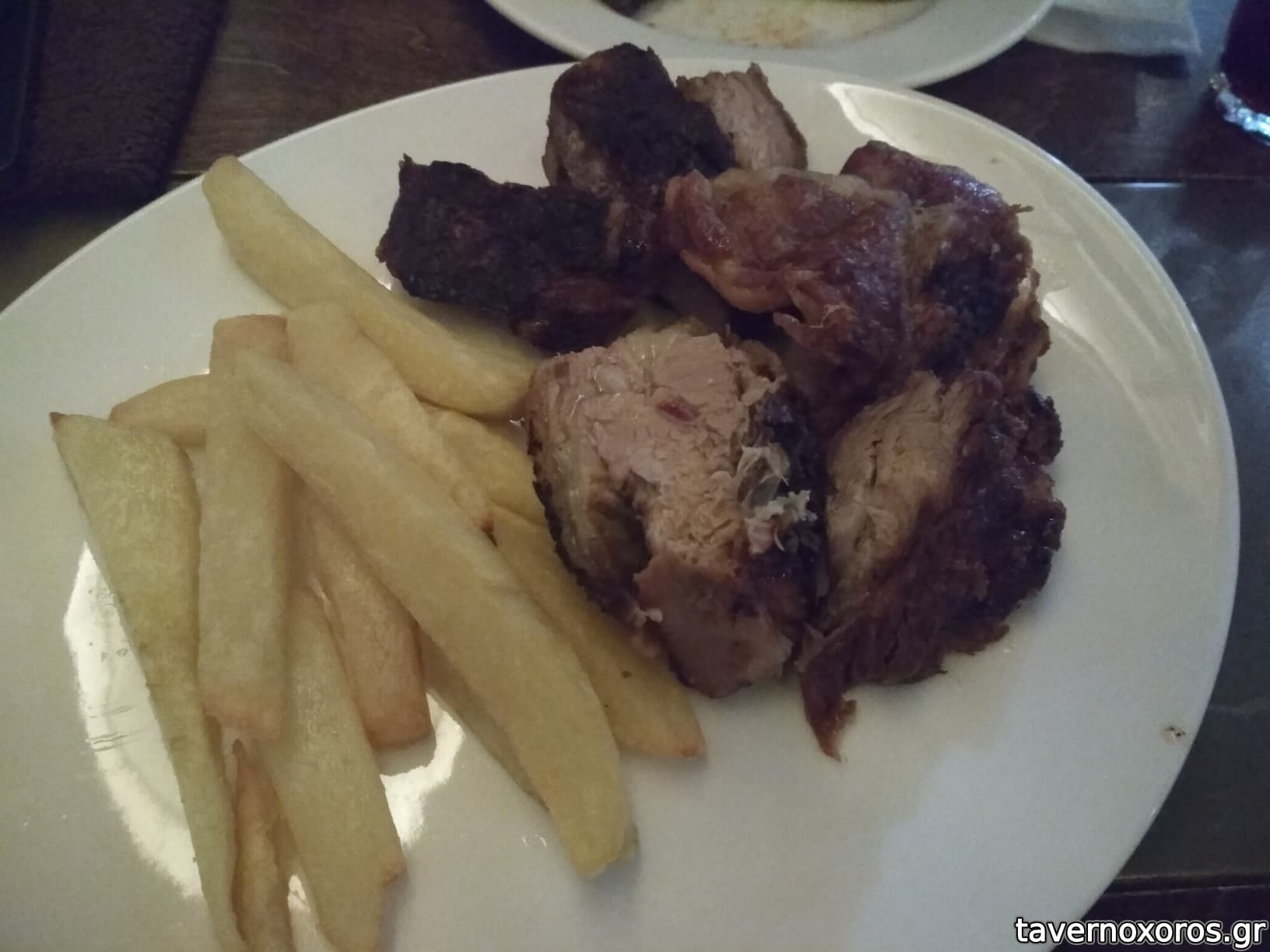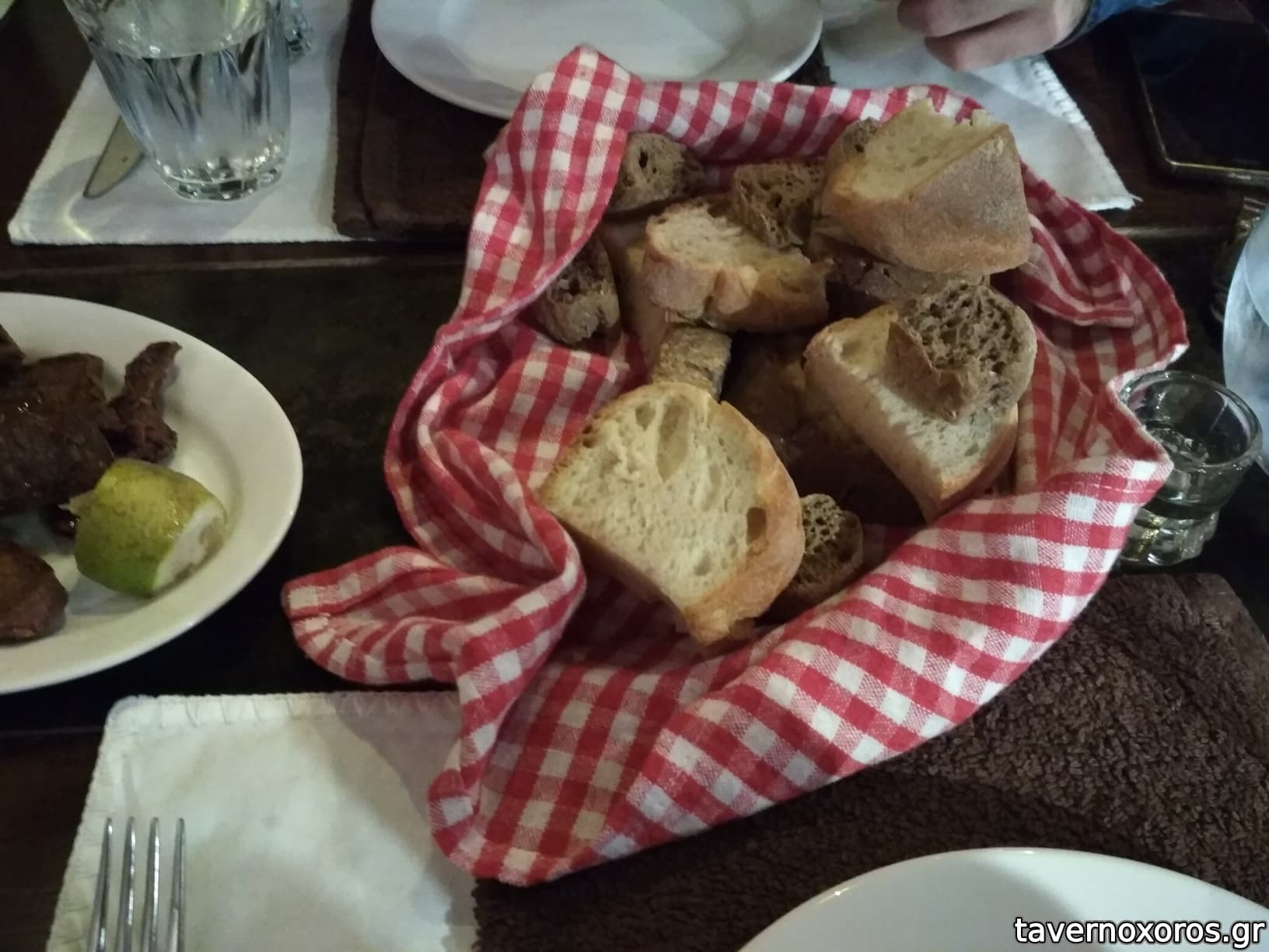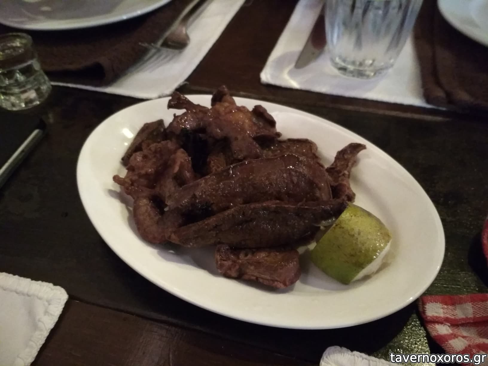 Το καλωσόρισμα στο τραπέζι είναι ρακή συνοδευόμενη με αρνίσια συκωταριά στο τηγάνι. Το αντικρυστό αρνί είναι εξαιρετικά ψημένο και, σπάνιο για κρητικό μαγαζί, χωρίς περίσσεια αλατιού.