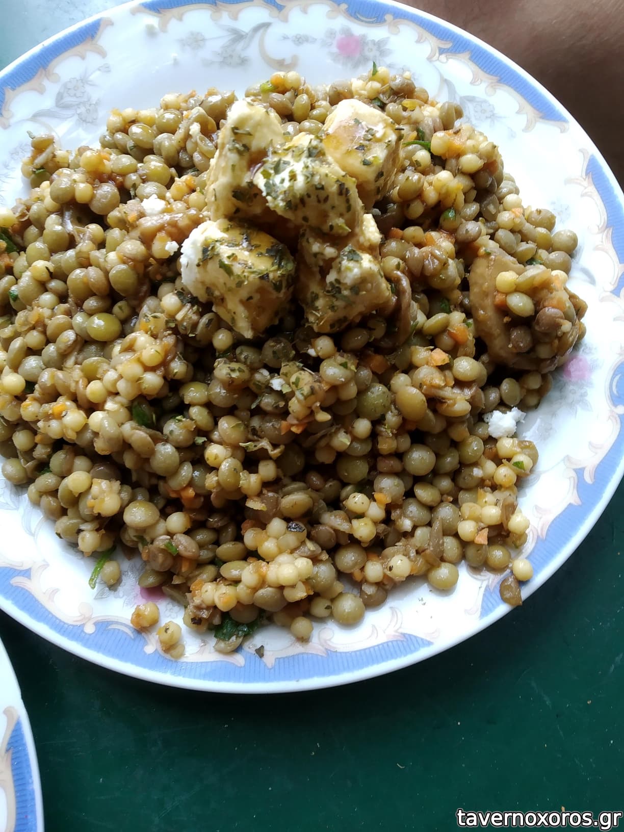 Σαλάτα φακές με κους κους και κατσικίσιο τυρί (πολύ καλό)