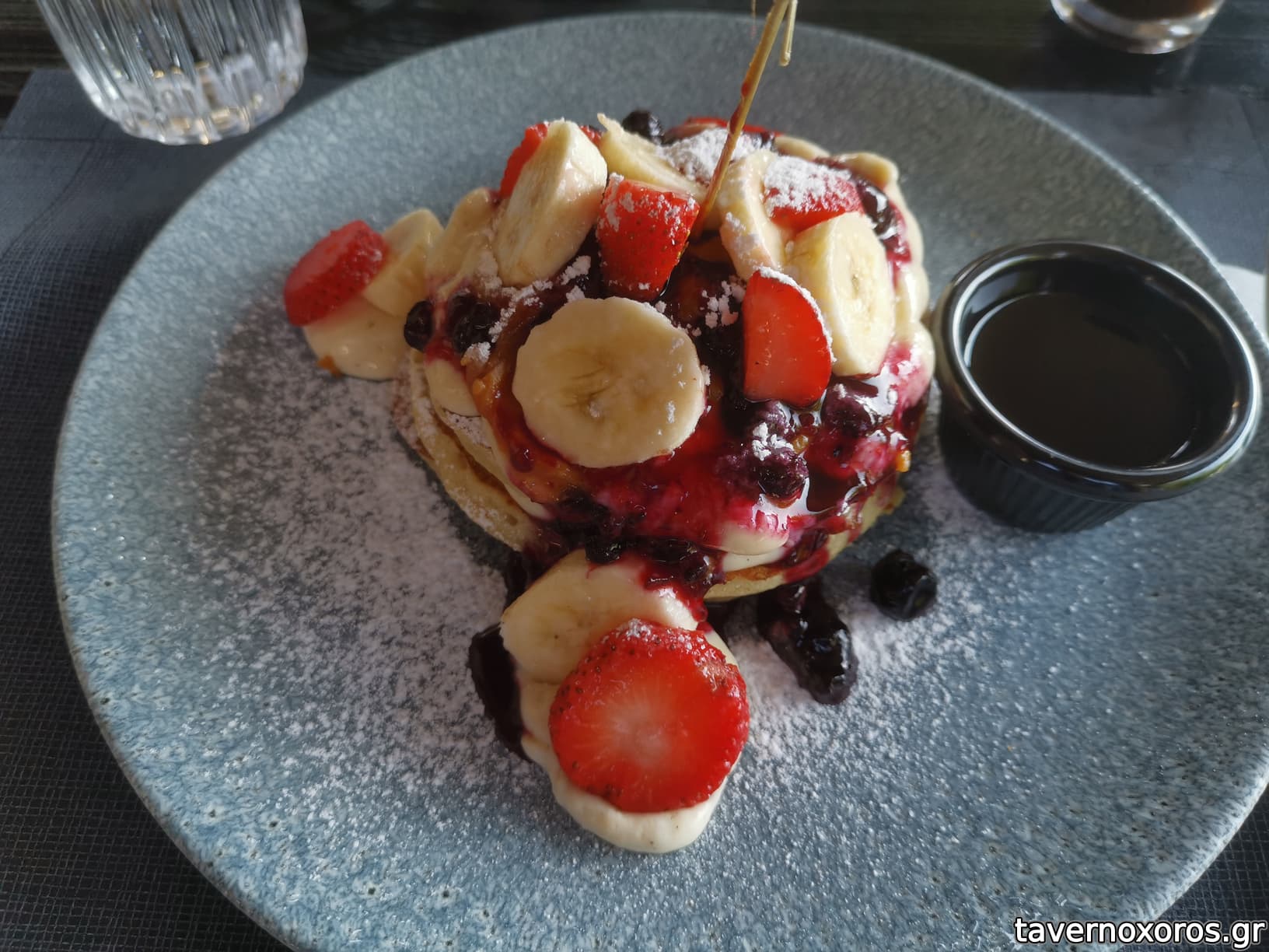 Ο καφές του σίγουρα απέχει παρασάγγας για να χαρακτηριστεί θεϊκός αλλά η γλυκιά αμαρτία των pancakes με κρέμα βανίλιας, φρούτα και σιρόπι σφενδάμου εκτιμώ ότι και ο Dio θα κυλούσε στο αμάρτημα να δοκιμάσει