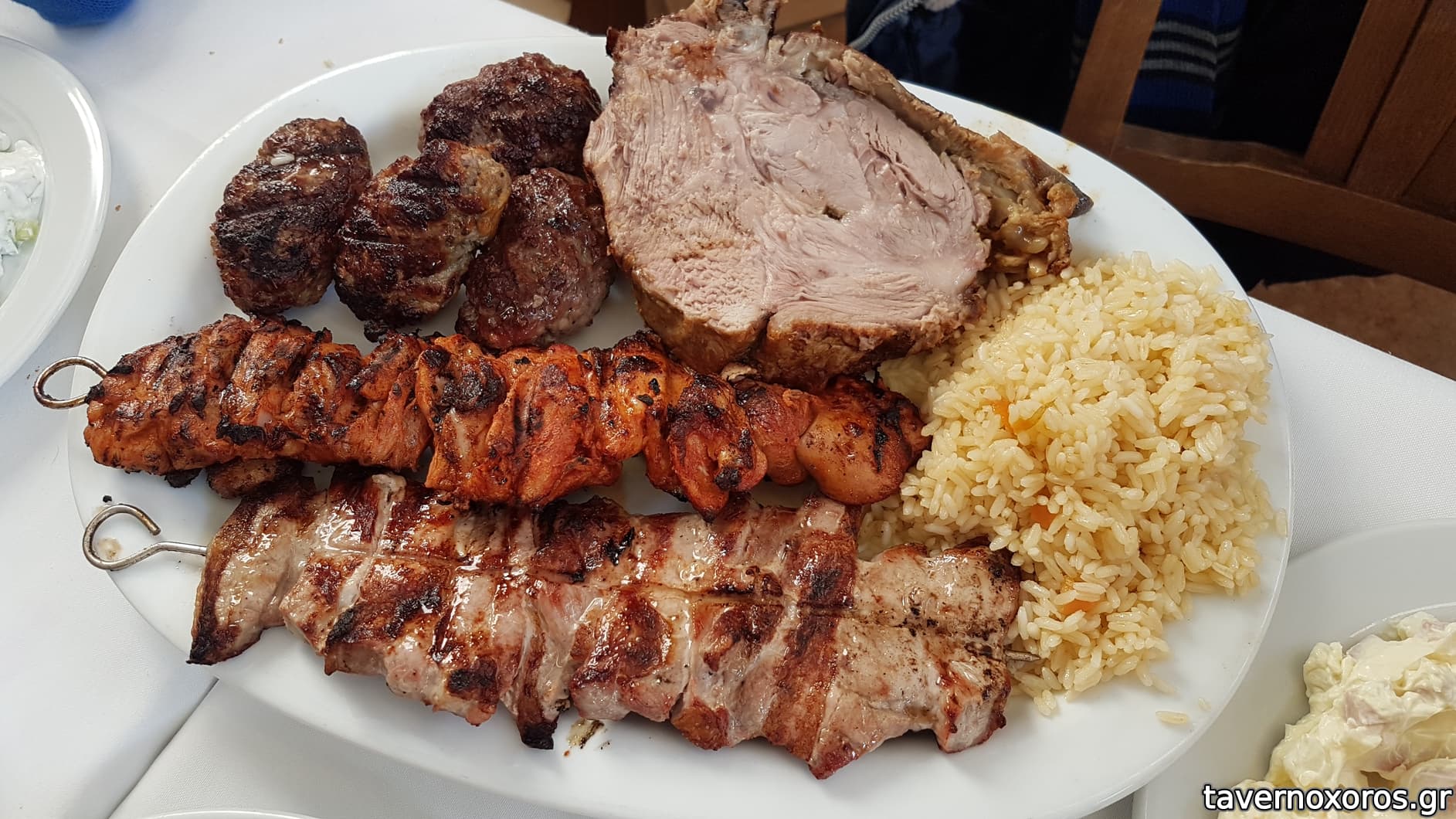 Σουτζουκάκια (καλά) & χοιρινή μπριζόλα σούβλα (καλή) & κοντοσούβλι κοτόπουλο (οκ) & σουβλάκι (μέτριο, στεγνό)