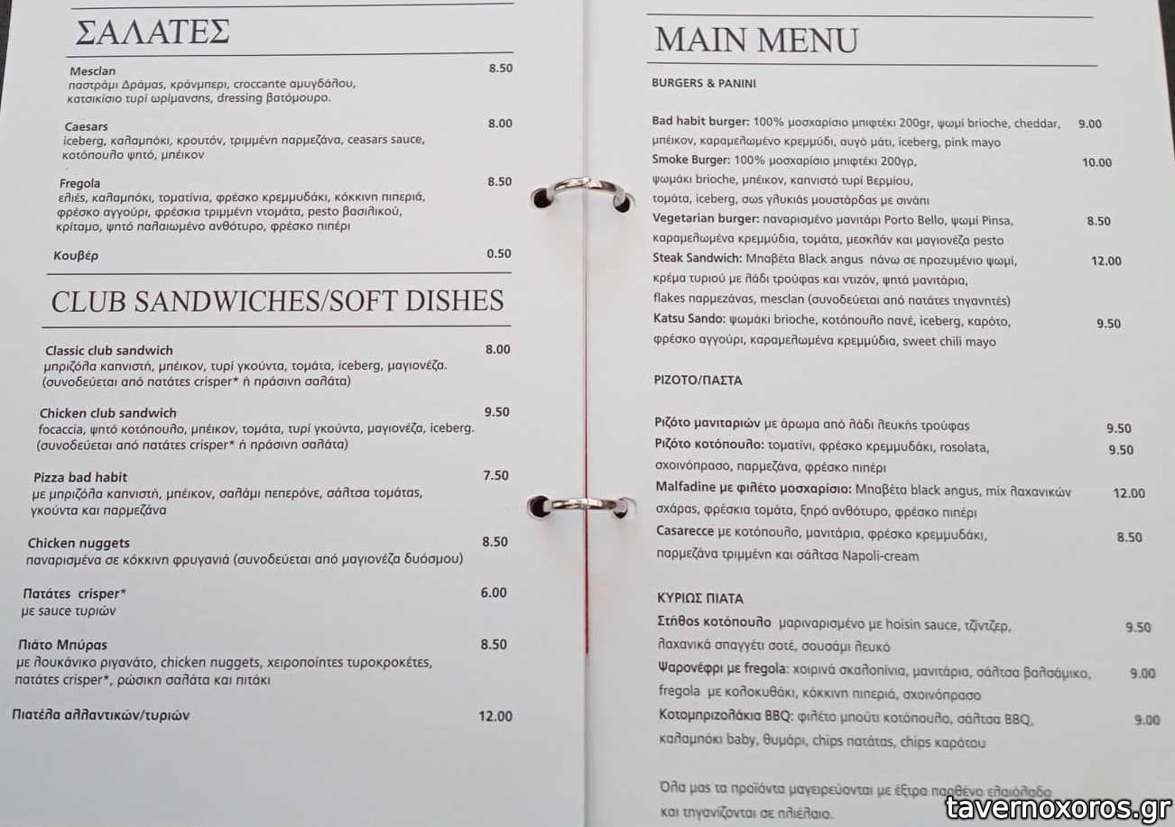 | Λέξεις κλειδιά | Μπαντ Χάμπιτ, #cafe-bar, #dj, #brunch, #σαλάτες, #πίτσα, #club sandwich, #ποικιλία αλλαντικών, #ποικιλία τυριών, #burgers, #ριζότο, #ζυμαρικά, #σάντουιτς, #κρέπες, #γλυκά |
