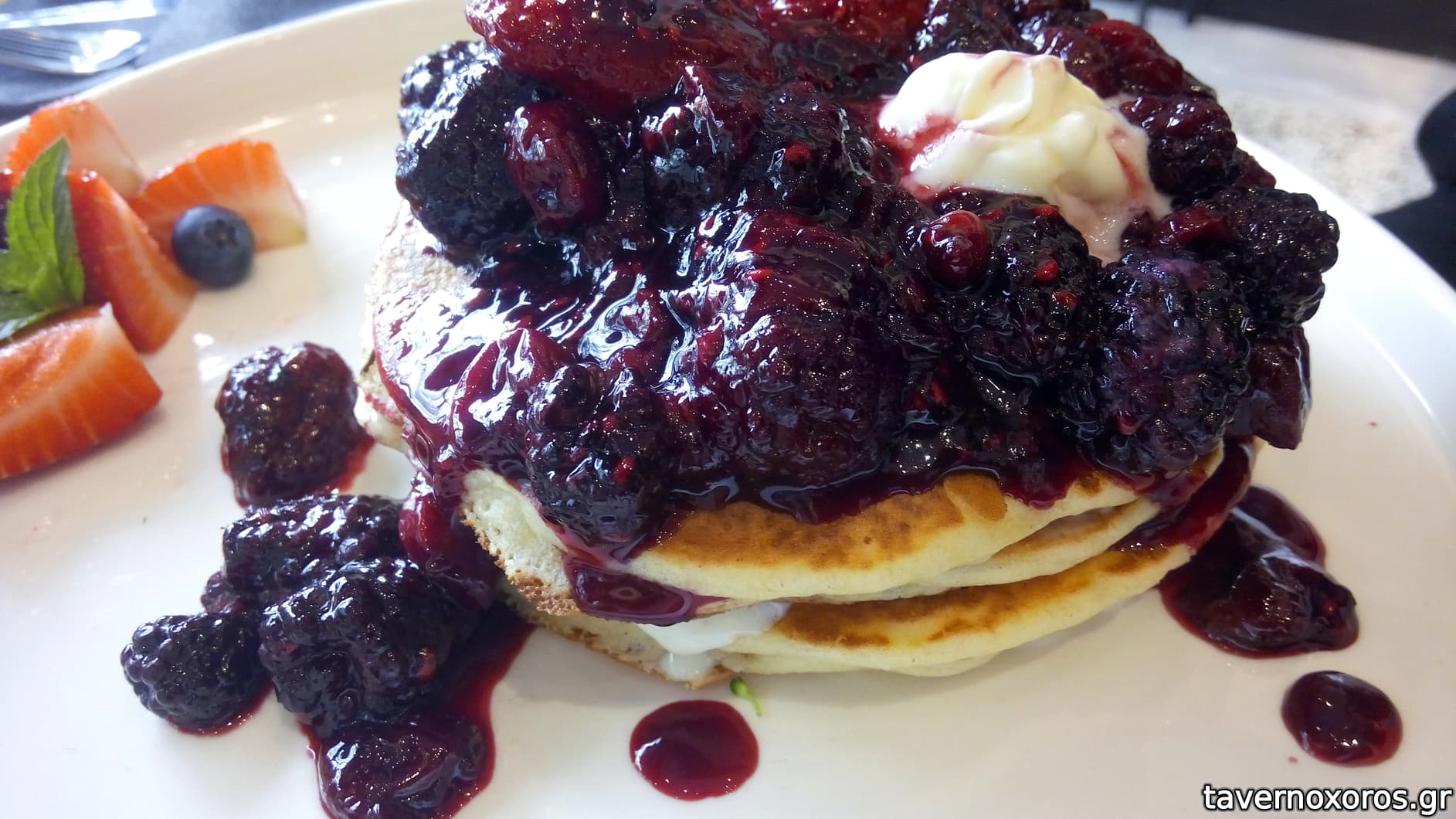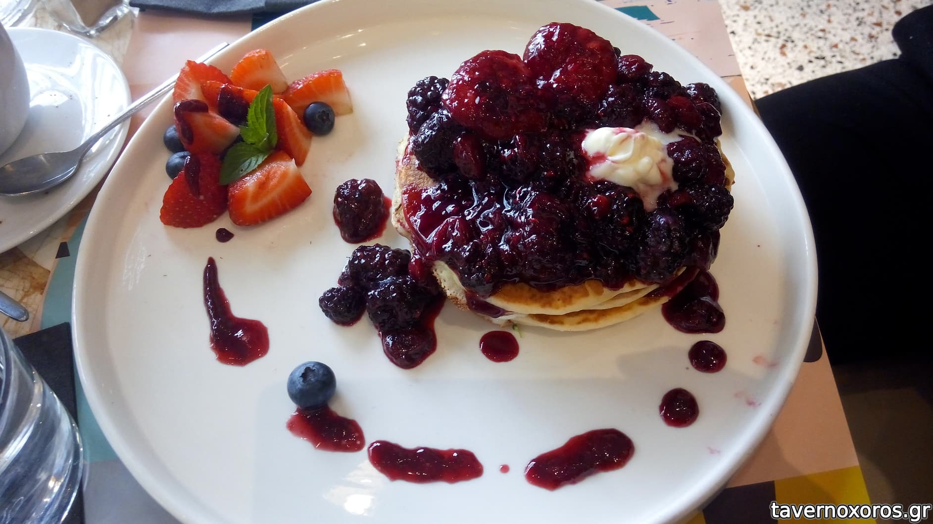 Pancakes με μαρμελάδα κόκκινων φρούτων και μασκαρπόνε