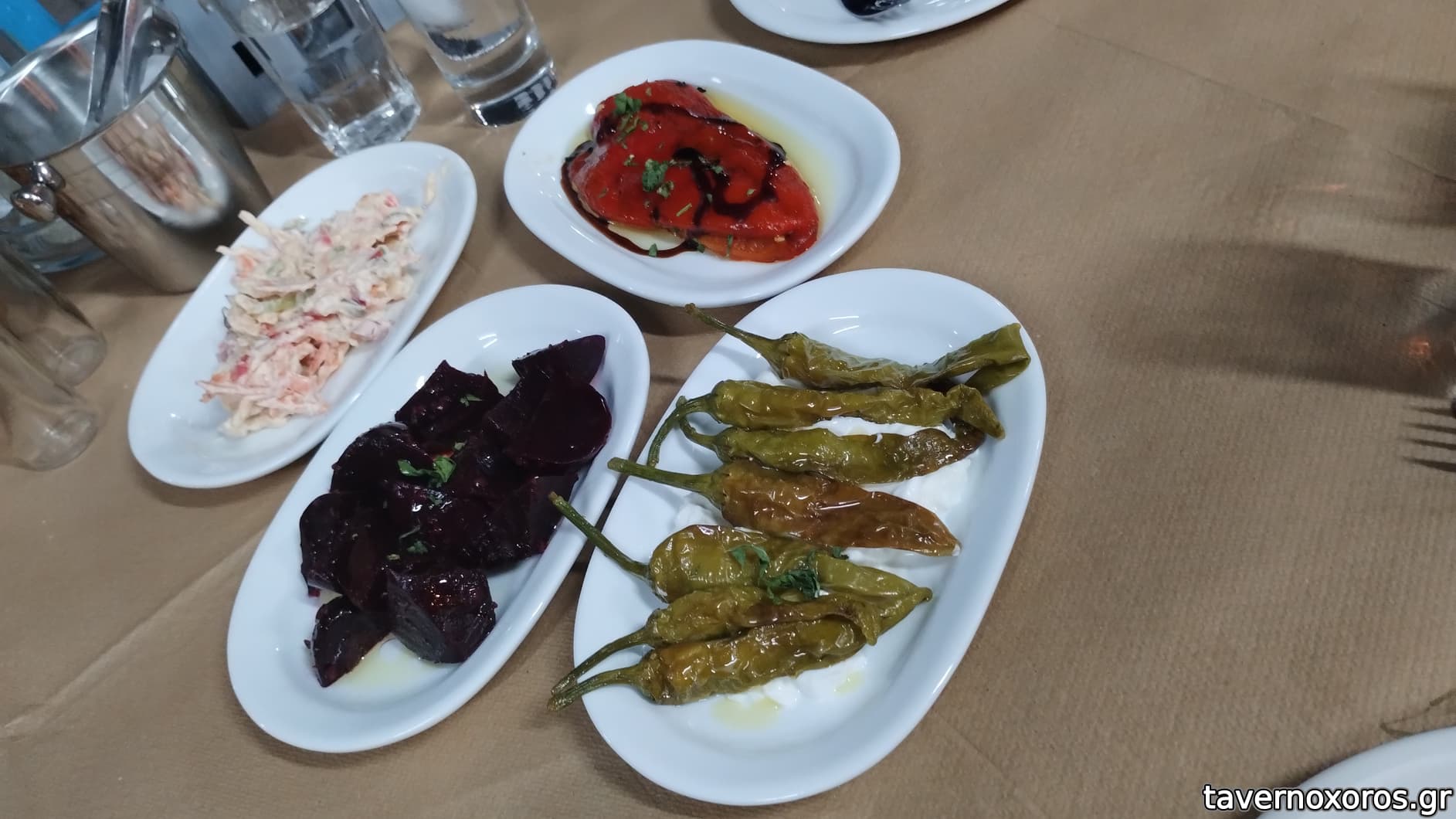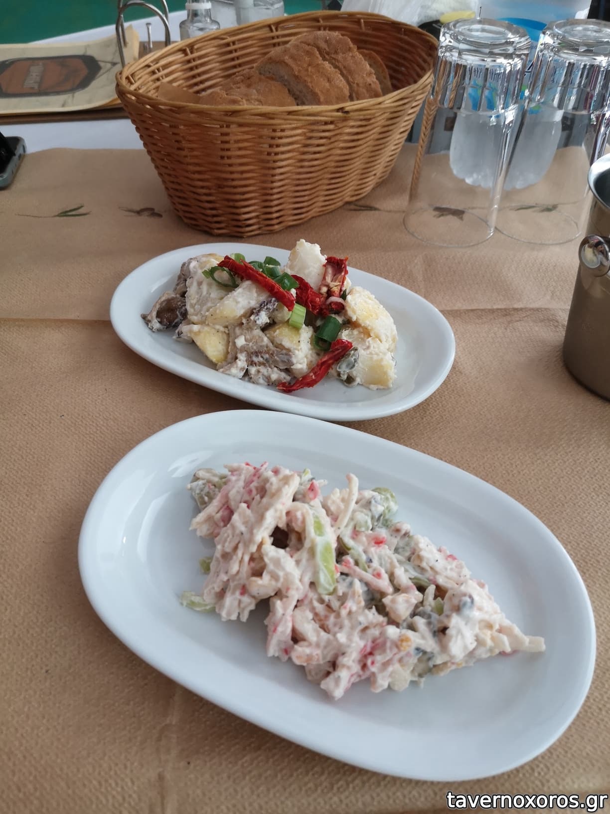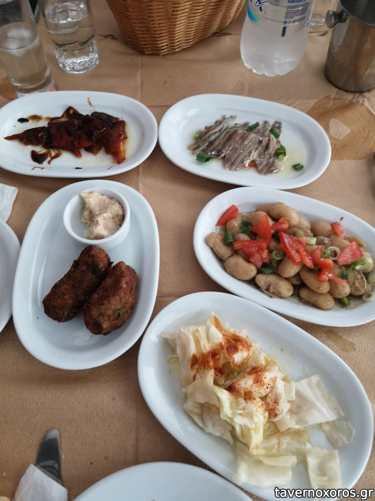 Φλωρίνης ψητές, γαύρος μαρινάτος, μπακαλιαροκεφτέδες, γίγαντες σαλάτα και λάχανο (μια χαρά, το λάχανο πολύ καλό!)