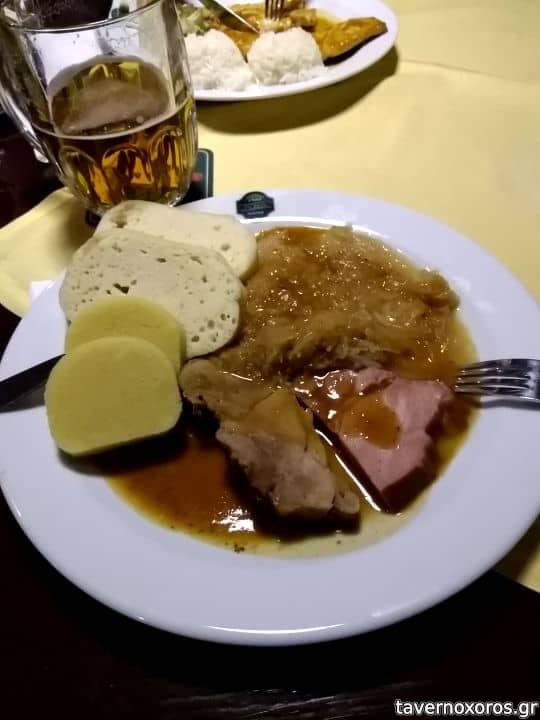 Χοιρινό με δύο τρόπους -καπνιστό και ψητό-, με ξυνολάχανο και δύο είδη ντάμπλινγκς (πολύ δυνατό)
