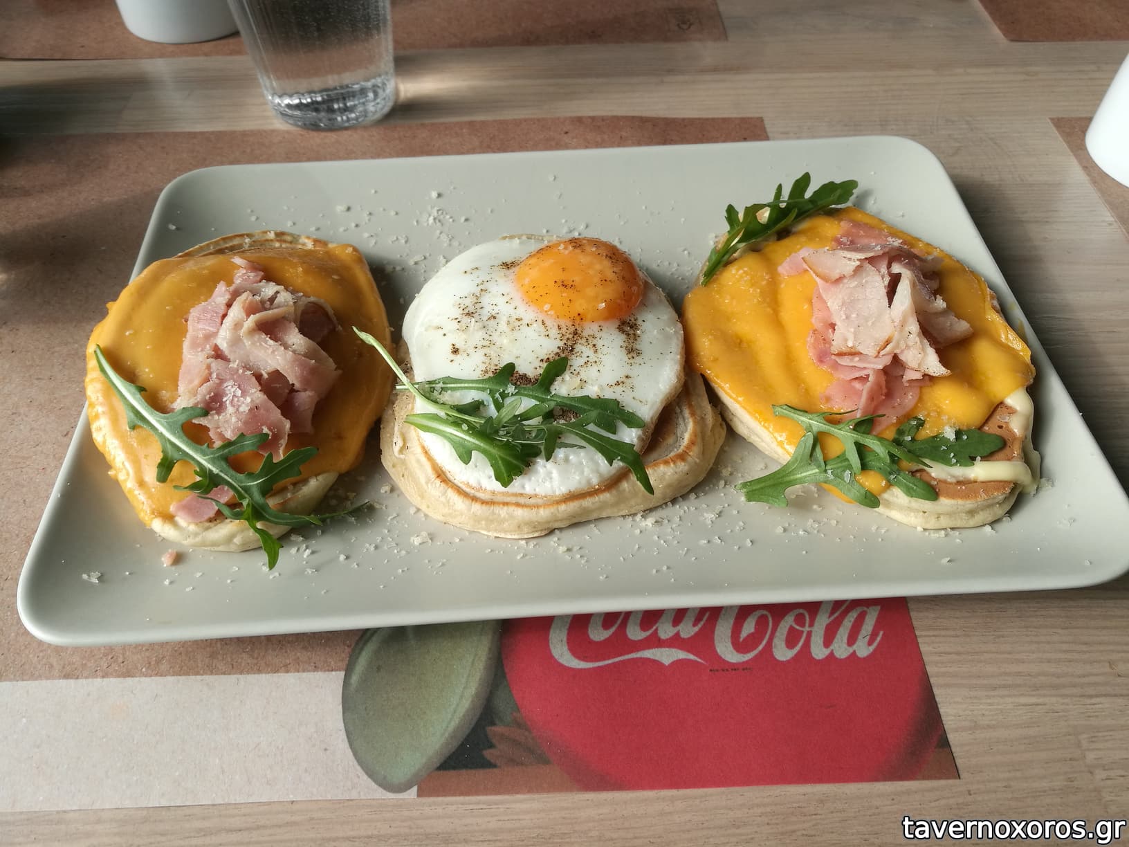 French pancakes: αυγό, cheddar, μπέικον, ρόκα, bearnaise (οκ, όχι κάτι συναρπαστικό)