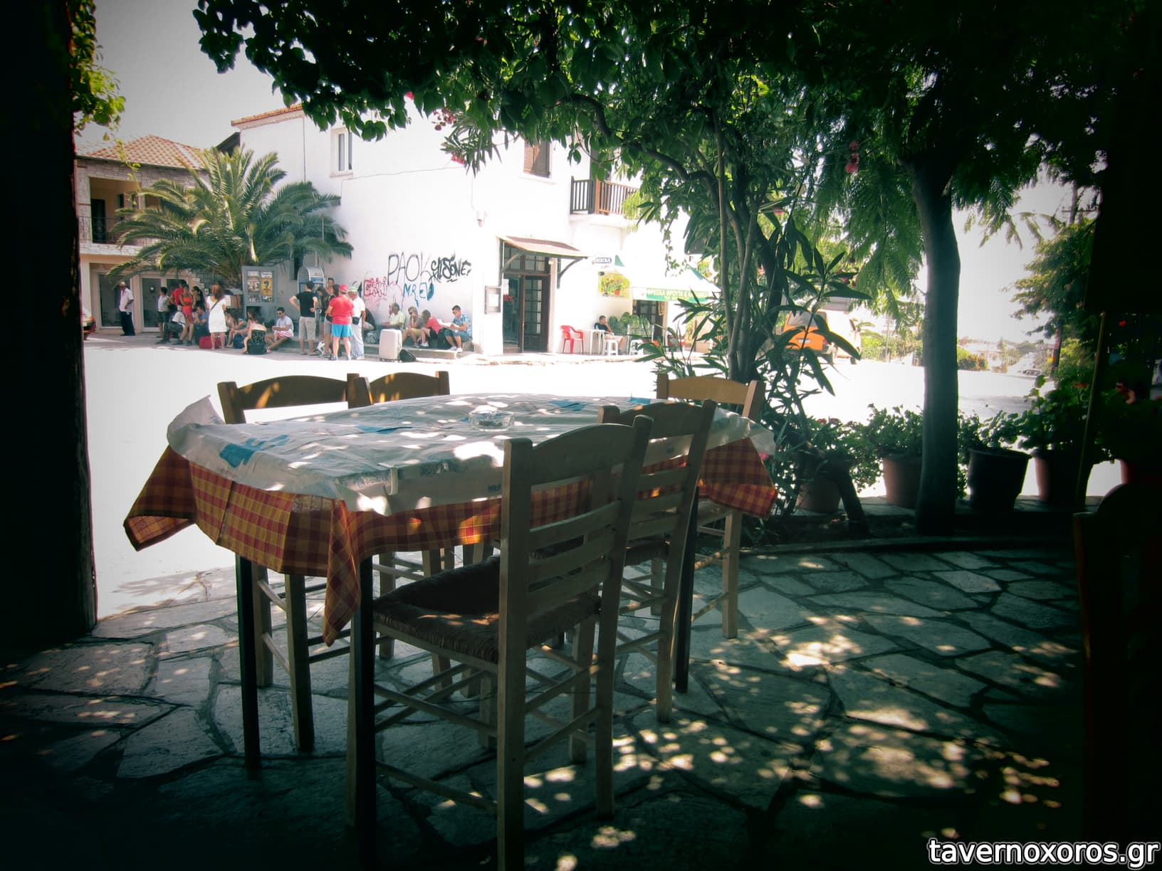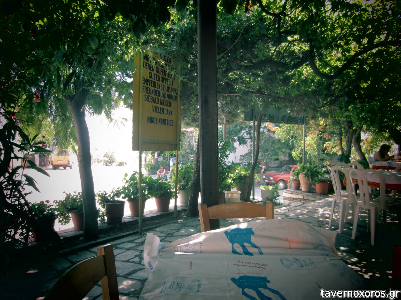 Έκατσα Ιούλιο 2011. Γνήσιο παλιό λαϊκό ταβερνάκι χωριού, με την απαραίτητη πλαστική καρέκλα και την παχιά σκιά της πυκνής κληματαριάς. Από φαγητό ότι δοκίμασα ήταν μια χαρά. Αναμενόμενες τιμές (περίπου 13€/άτομο). Το θεωρώ καλή επιλογή αν θέλεις να αποφύγεις τη βαβούρα της παραλίας.