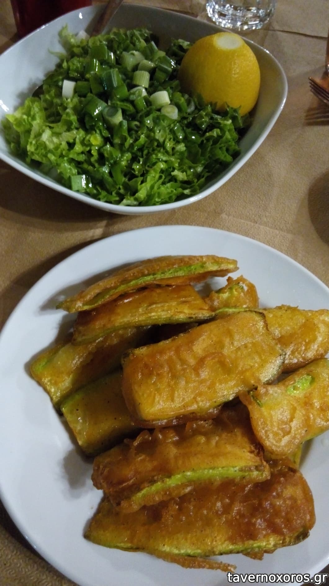 Μαρούλι και τηγανητά κολοκυθάκια (άθλια)