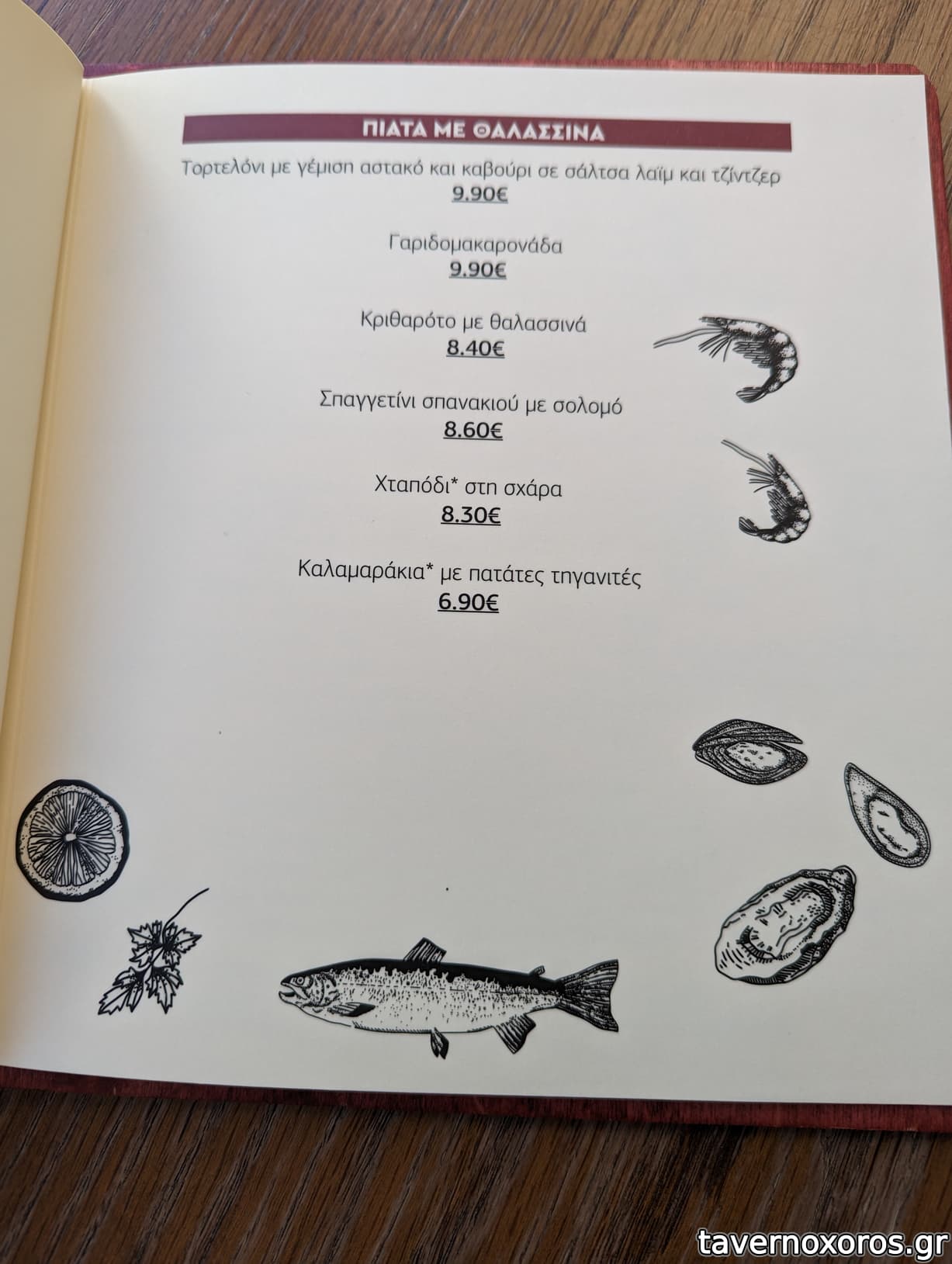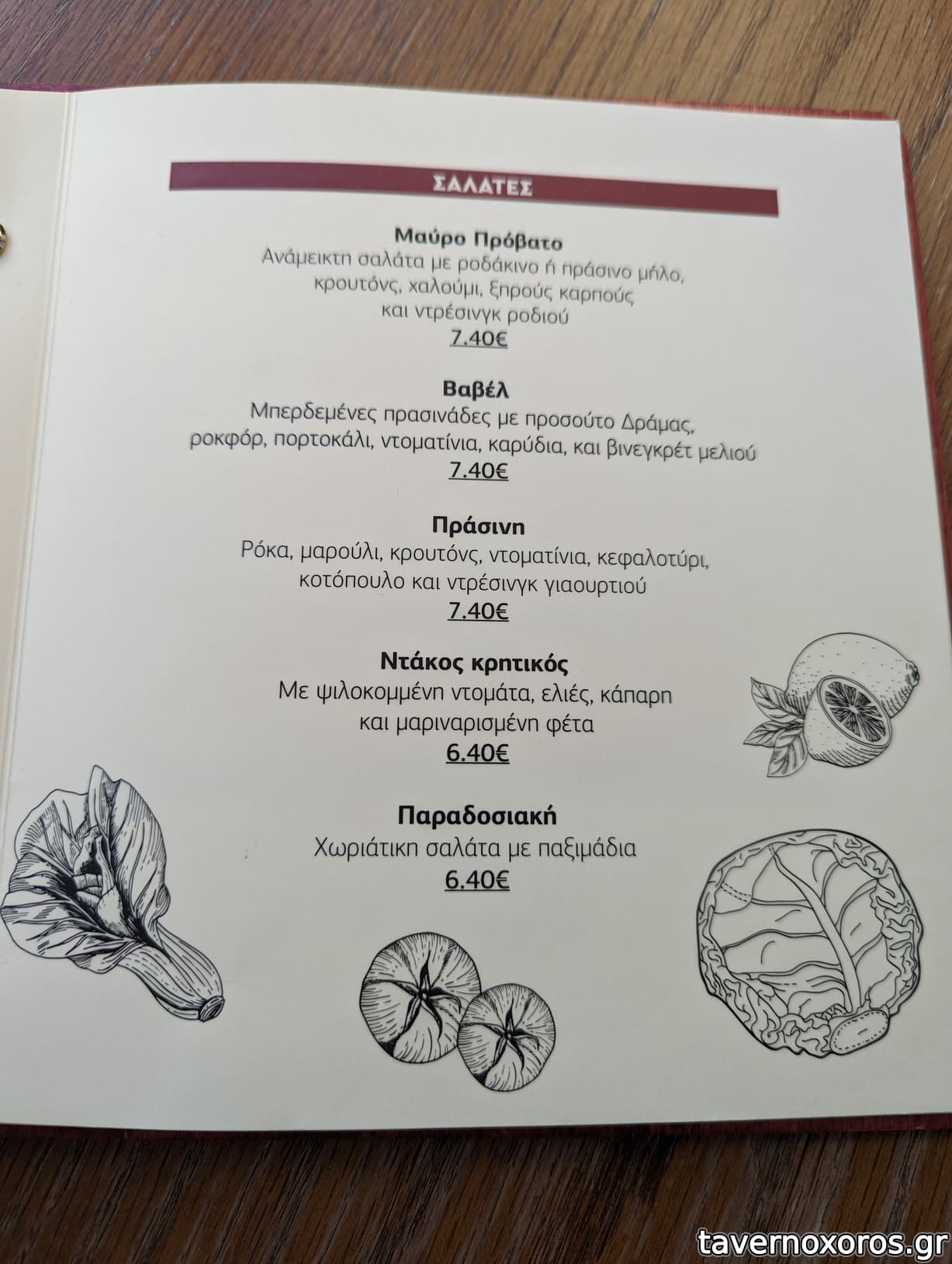 Κατάλογος με πολλά ορεκτικά, λίγα κυρίως πιάτα και ορισμένες επιλογές σε steak. Τα κυρίως πιάτα δεν ενθουσίασαν, τα ορεκτικά όμως ήταν καλά στο σύνολο τους.