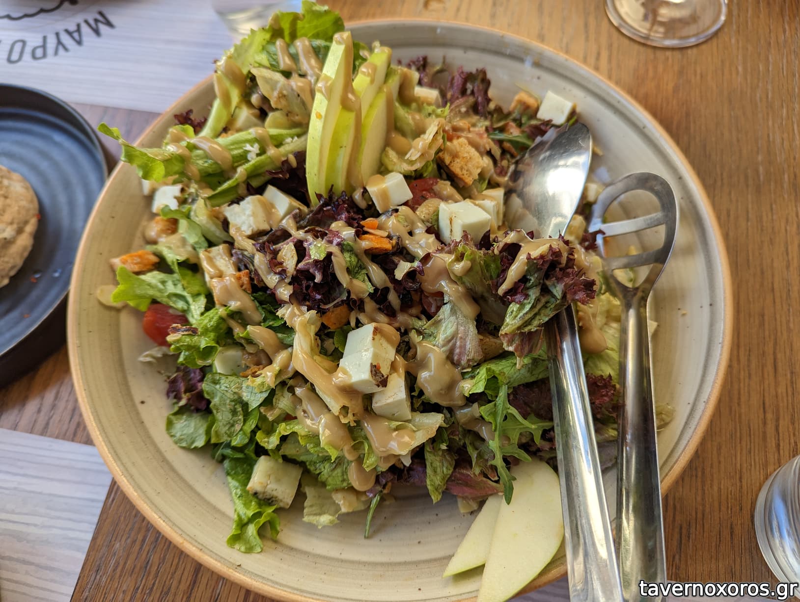 * Σαλάτα Μαύρο Πρόβατο: πρασινάδες, χαλούμι, καρύδια, σταφίδες, πράσινο μήλο. -Εξαιρετικά ισσορροπημένη
