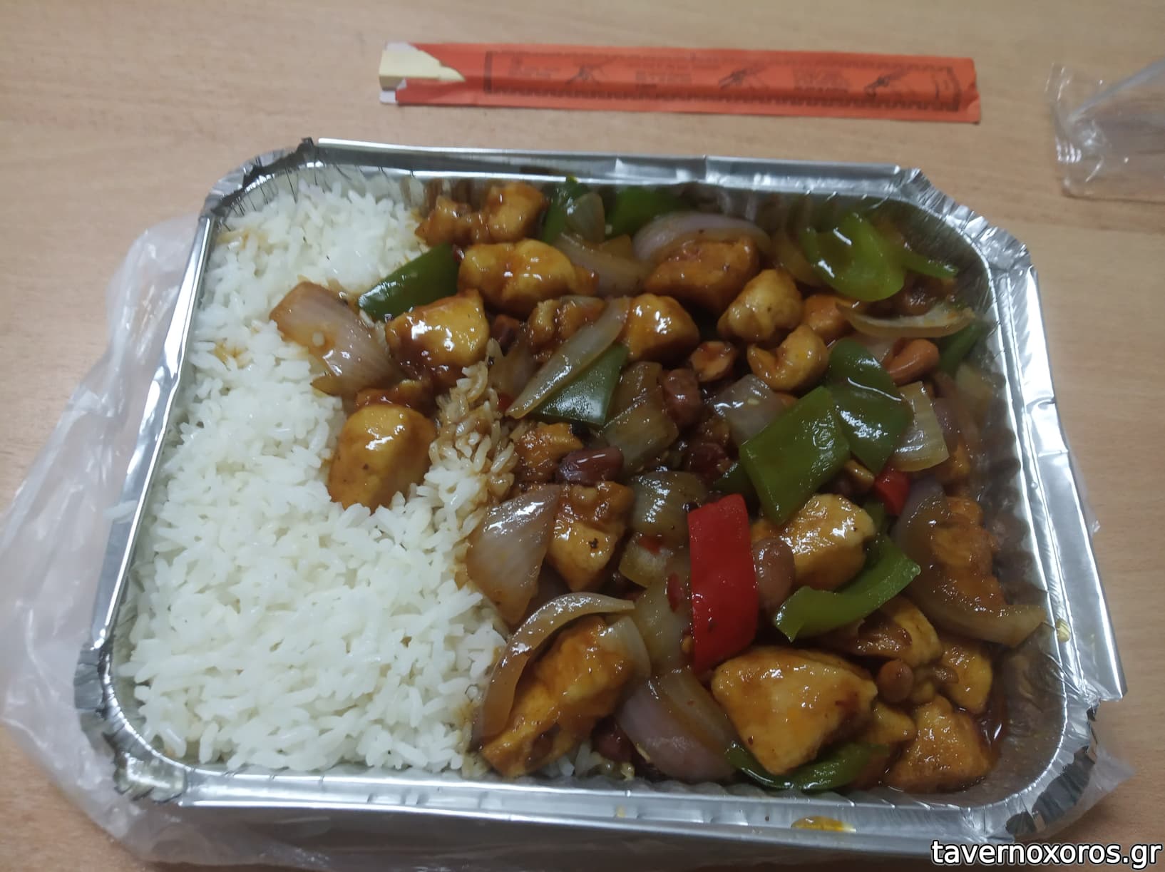 Καυτερό κοτόπουλο (αυστηρά για Κινέζους: έκαιγε αφόρητα. Ίσως αυτοί δεν τρώνε τις πιπεριές τσίλι, και τα κοτόπουλα είχαν μέσα χόνδρους και κοκαλάκια. Τέλος το ρύζι άκυρο γιατί δεν υπήρχε σάλτσα)