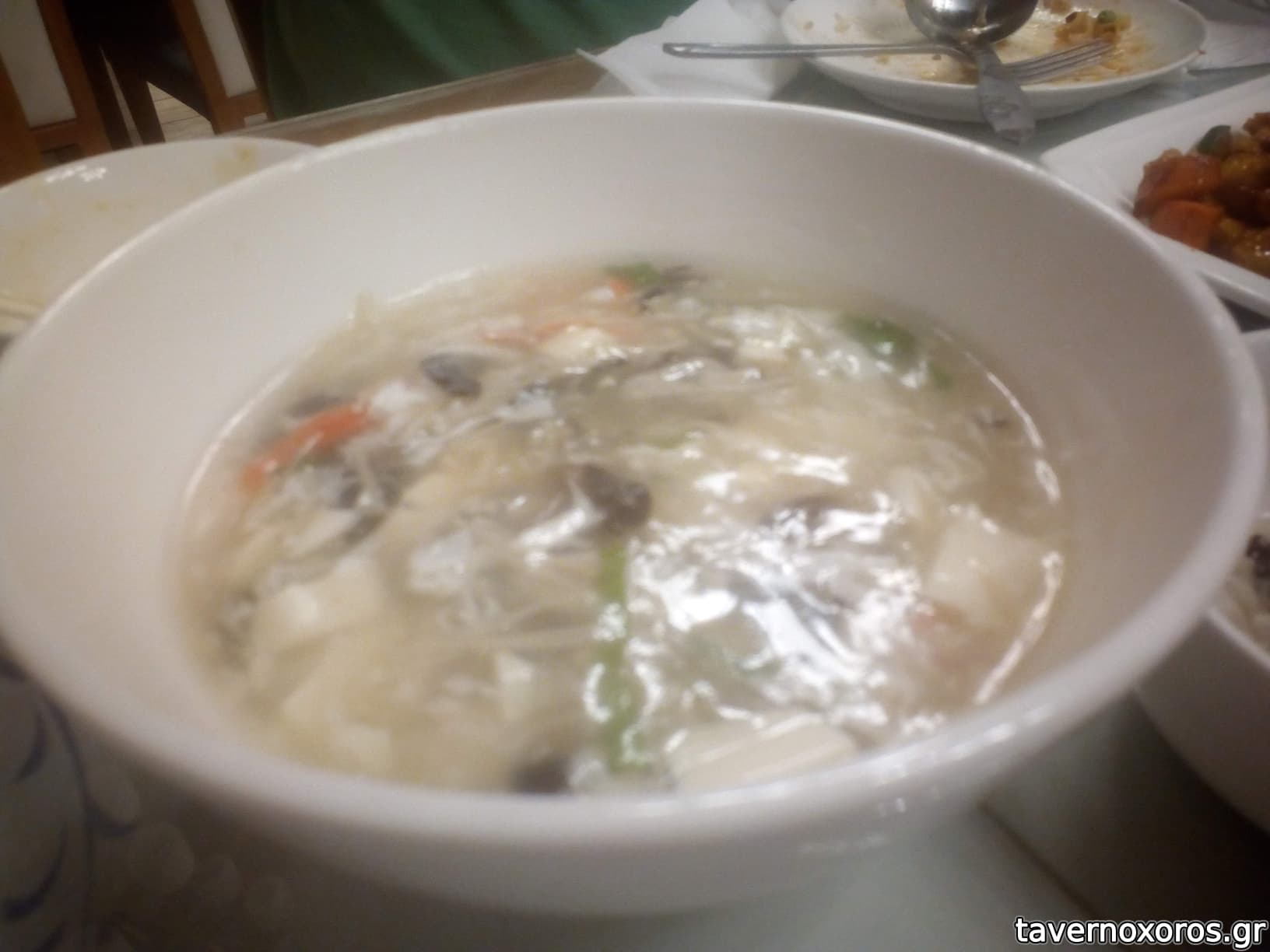 Σούπα με Μπαμπού και Μανιτάρια. Άνοστη, ήθελε το κάτι για να πάρει γεύση. Μας έδωσαν λίγο καυτερό. Δεν ικανοποίησε.