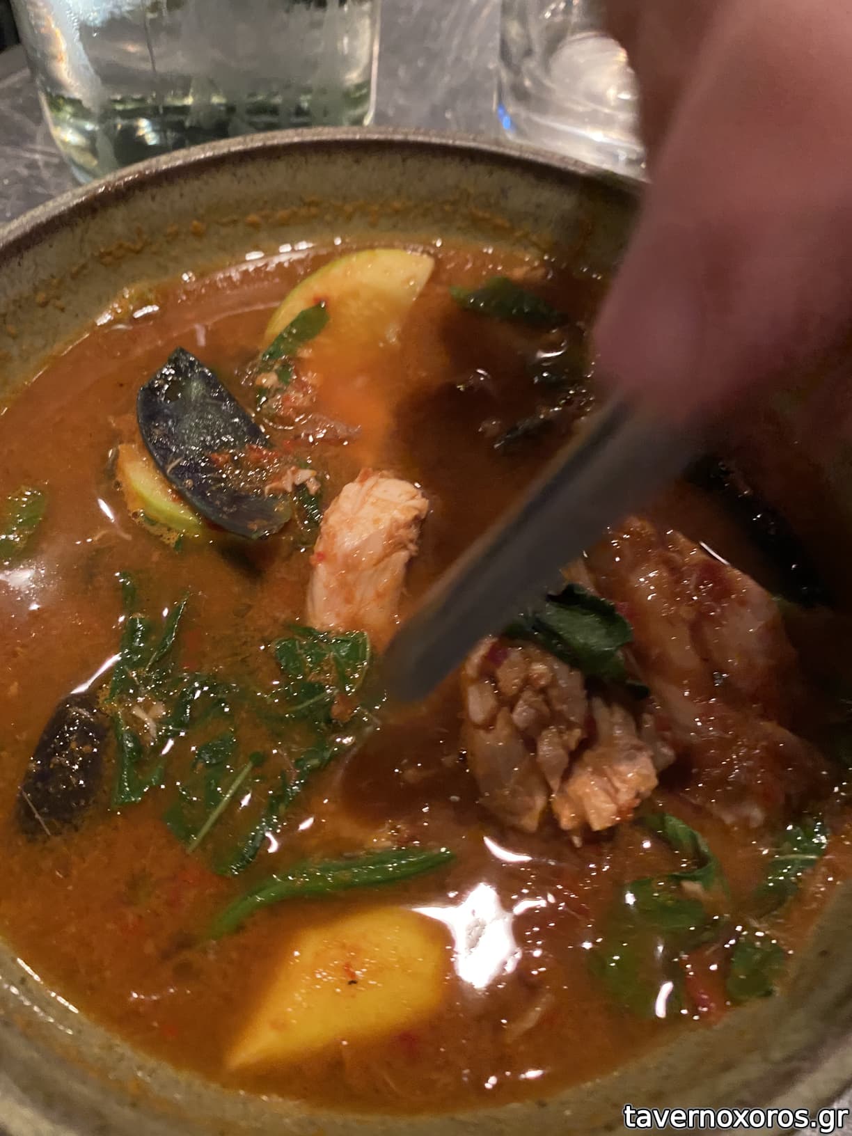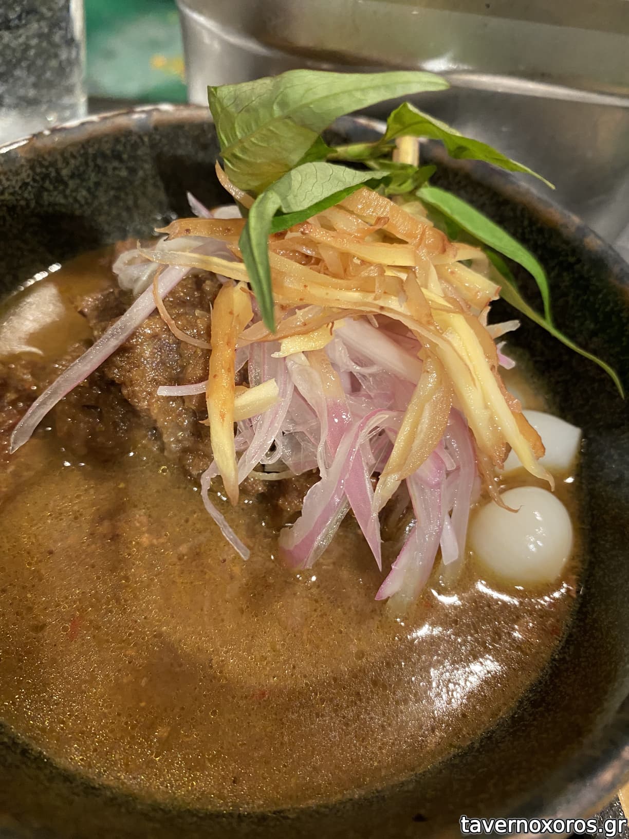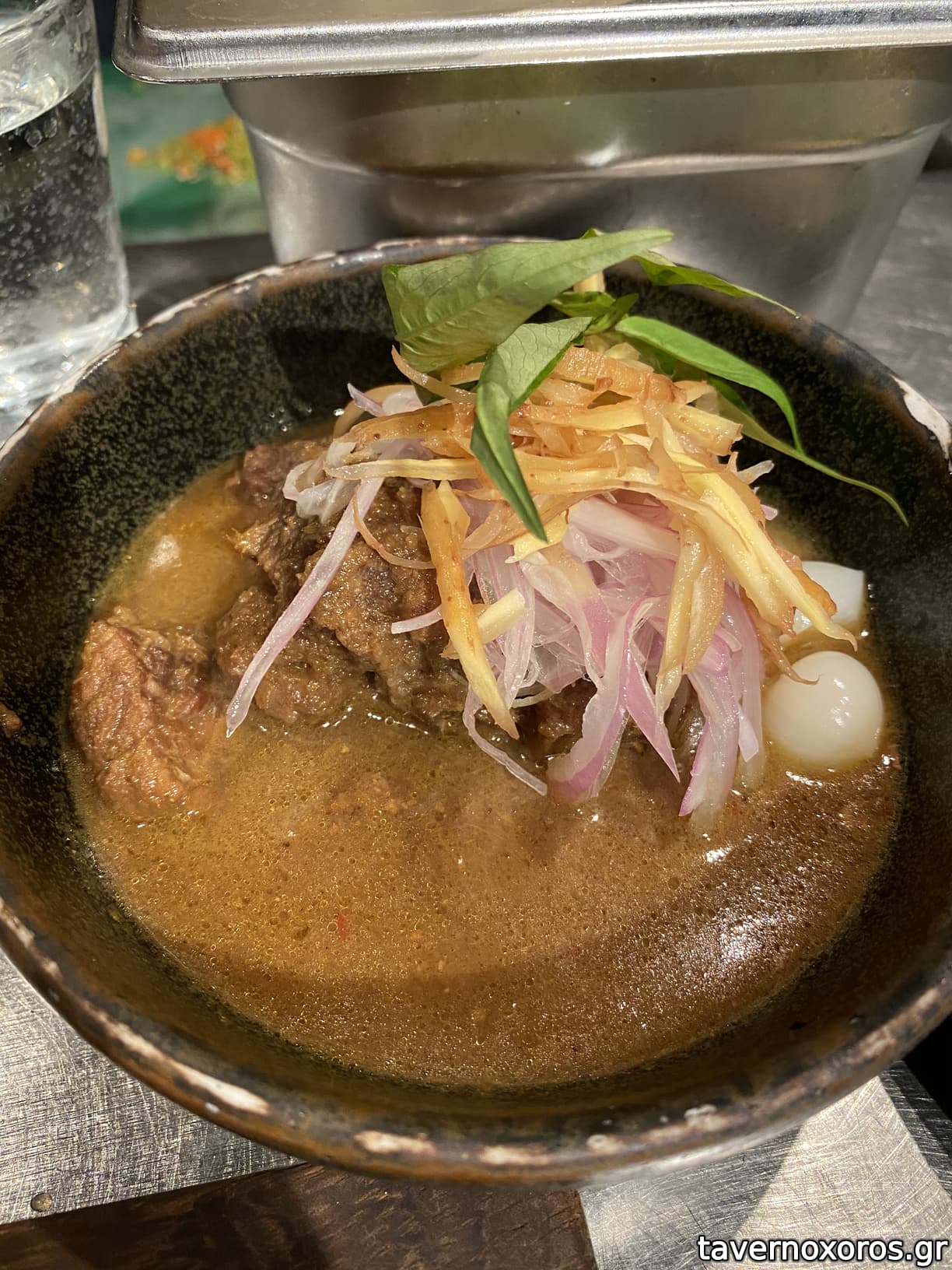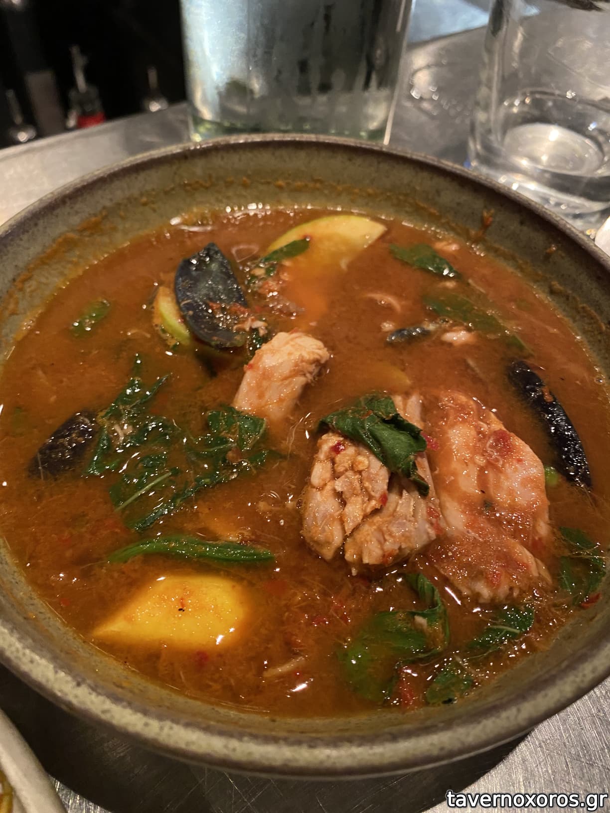 Το φαγητό ήταν πολύ καλό, και η πλειοψηφία των πιάτων ήταν σε πολύ καλά επίπεδα. Η κουζίνα είναι Ταυλανδέζικη, με κάρβουνα και χρησιμοποιούν πολύ καλές πρώτες ύλες ντόπιες. Οπωσδήποτε να δοκιμάσετε τα noodles με το καβούρι και το χοιρινό.