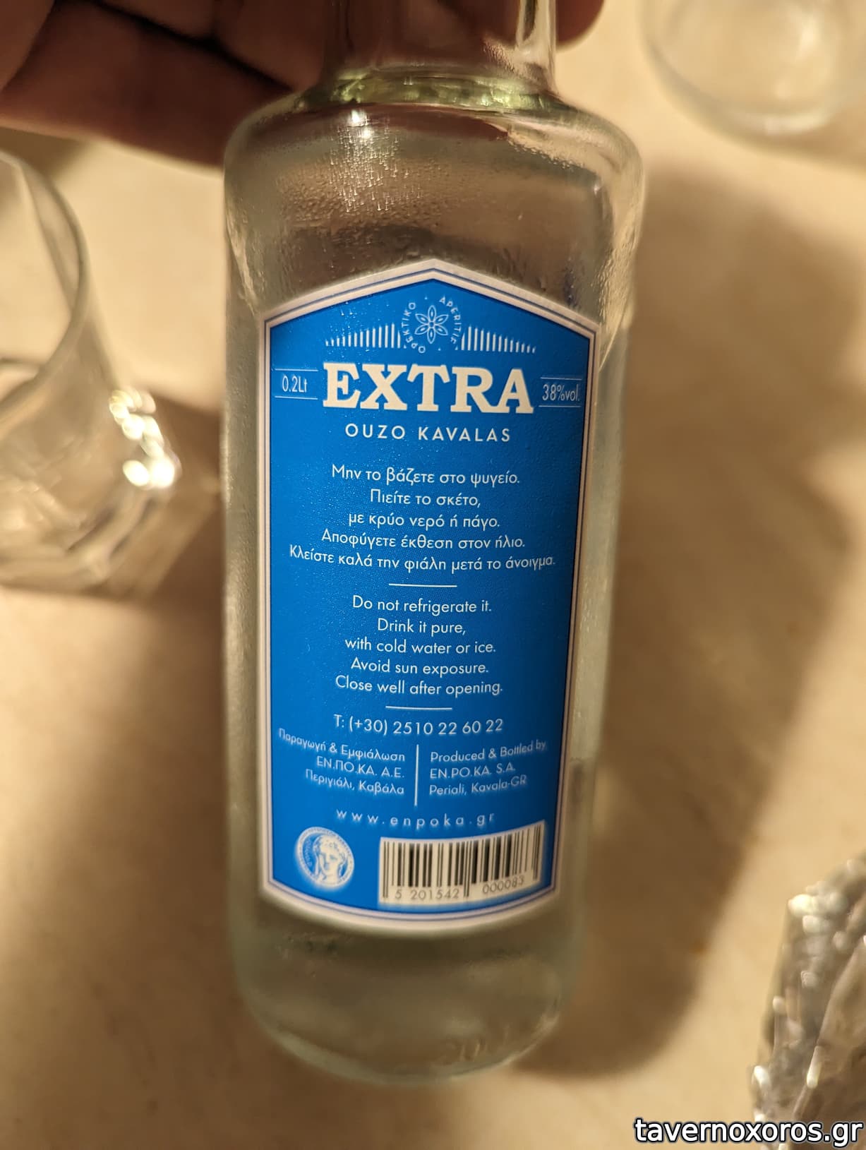 Τσίπουρο "Θάλασσα" & Ούζο "Extra" (και τα δύο από την τοπική [url=https://www.enpoka.gr/about/]ΕΝ.ΠΟ.ΚΑ[/url] που εμπορεύεται αλκοόλη γεωργικής προέλευσης που συνήθως χρησιμοποιείται στα ούζα)