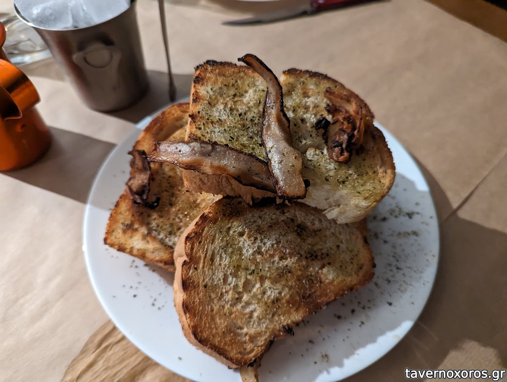 Στα του φαγητού ότι δοκιμάσαμε ήταν από καλό έως πολύ καλό. Ακόμη και το ψωμί ήρθε όπως έπρεπε , με λίγο λαδακι και ρίγανη αφού πέρασε πρώτα από τη σχάρα. Πήγαμε με κρέας και δεν το μετανιώσαμε. Χοιρινά μπριζολάκια λαιμού ζουμερά και νόστιμα και συκώτι εξαιρετικό. Να σημειώσω πως το χύμα λευκό κρασί του είναι πάρα πολύ καλό, πράγμα σπανιο για χύμα κρασί. Ξηρό, ελαφρύ και στη σωστή θερμοκρασία για να βγαζει τα αρώματα του!!