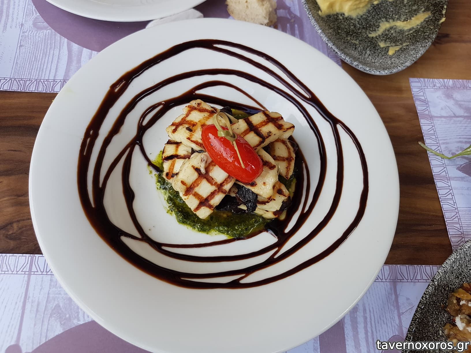 "Μανιτάρι porto bello στη σχάρα με χαλούμι πέστο μυρωδικών και κρέμα βαλσάμικο" (συμπαθητικό)