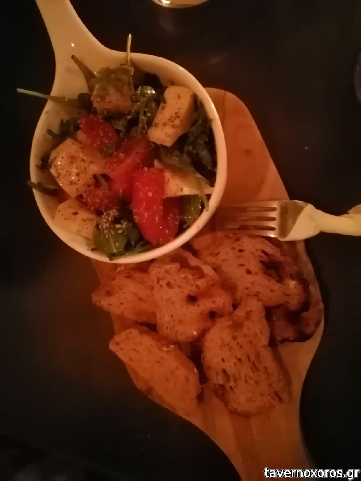 Cocas με καπνιστό ψαρονέφρι και flakes αγκινάρας