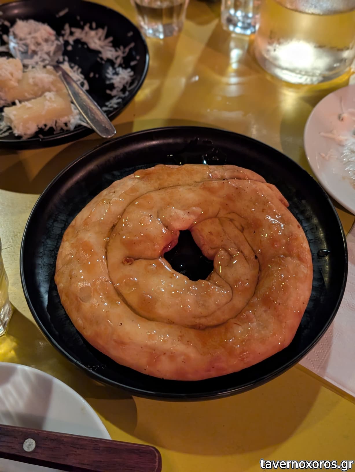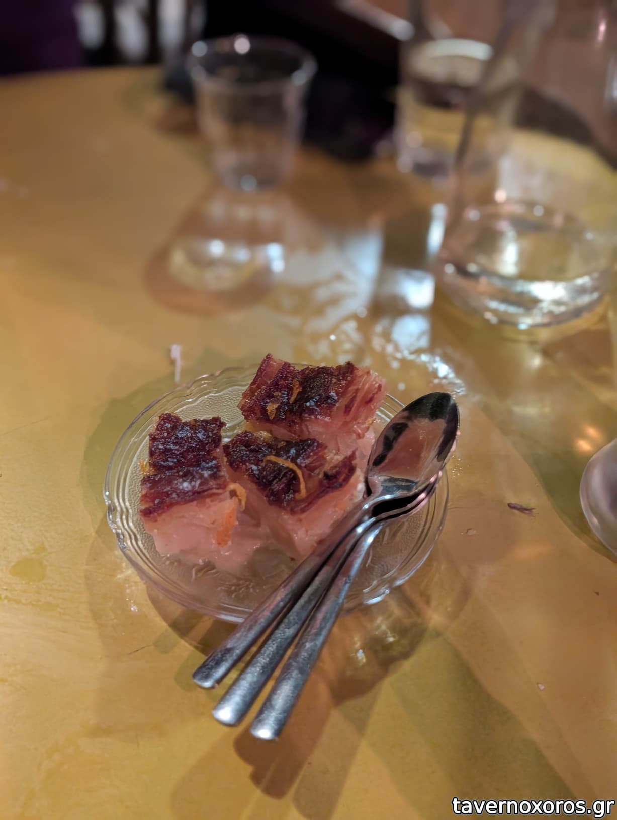 Γιαούρτι με γλυκό του κουταλιού κεράσι (κέρασμα, πολύ καλό) και πορτοκαλόπιτα (κέρασμα, οκ)
