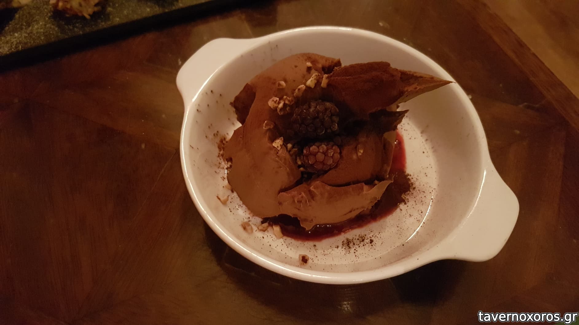 "Spicy chocolate ganache with berry coulis" (απλώς οκ)