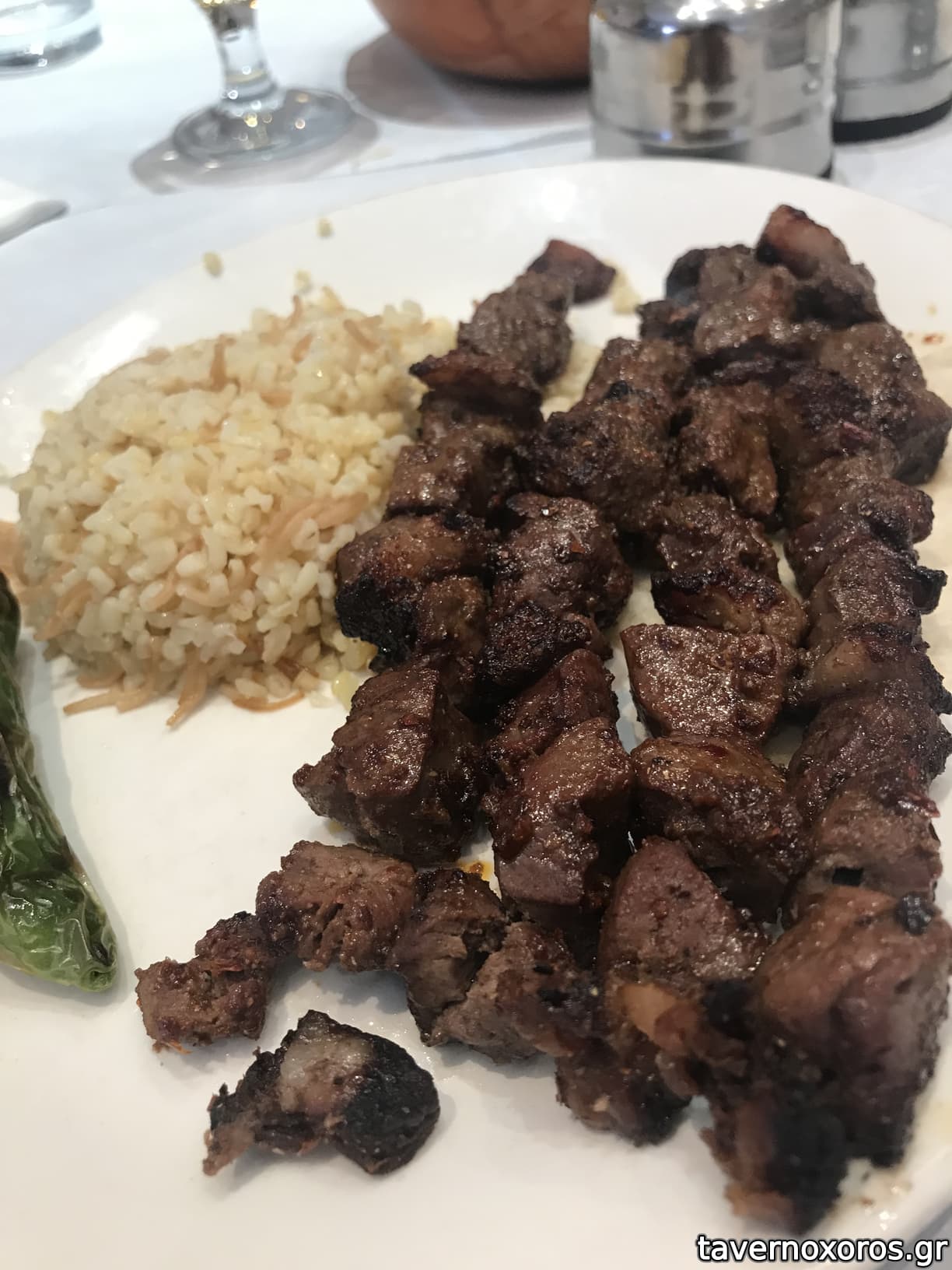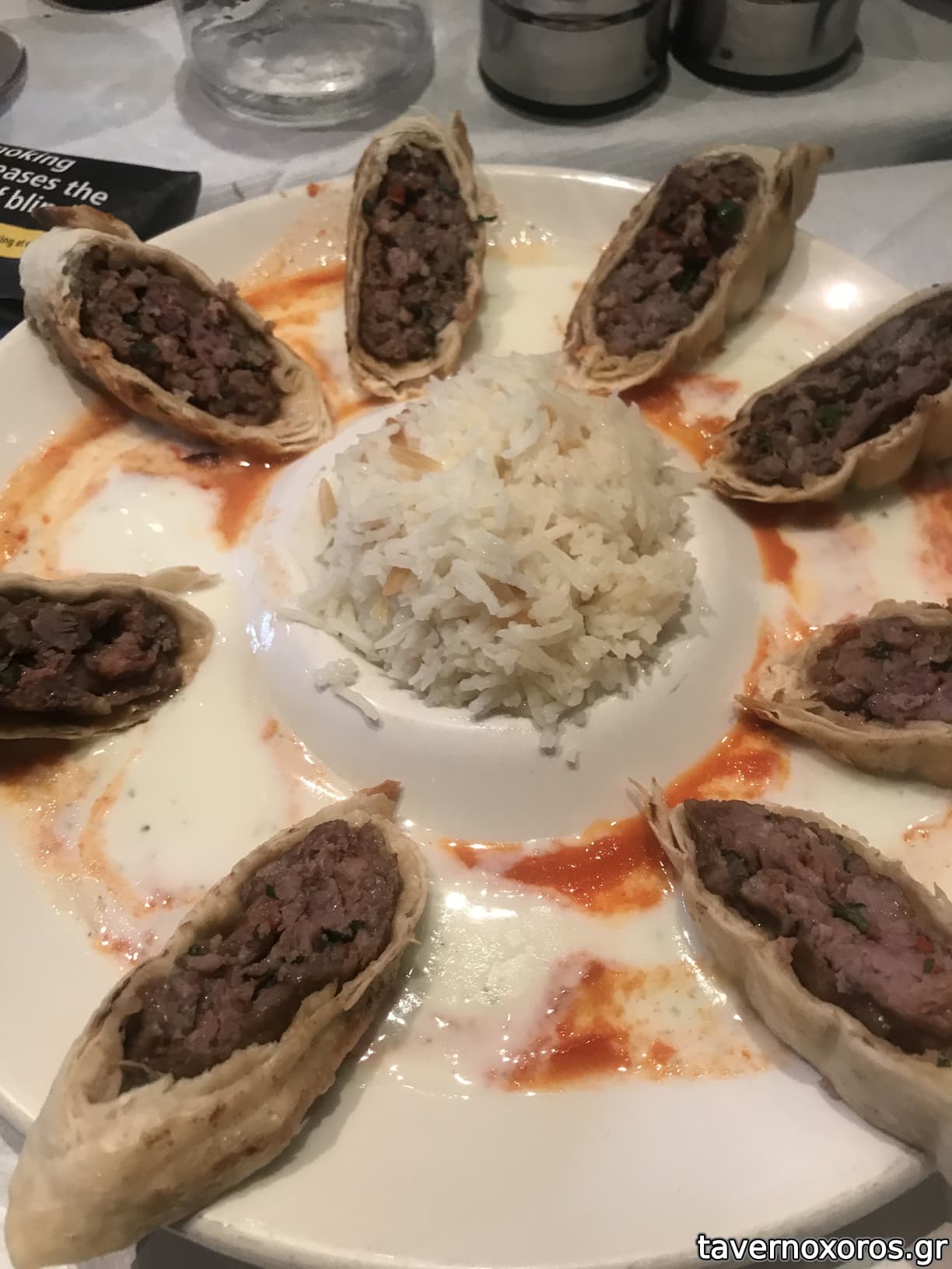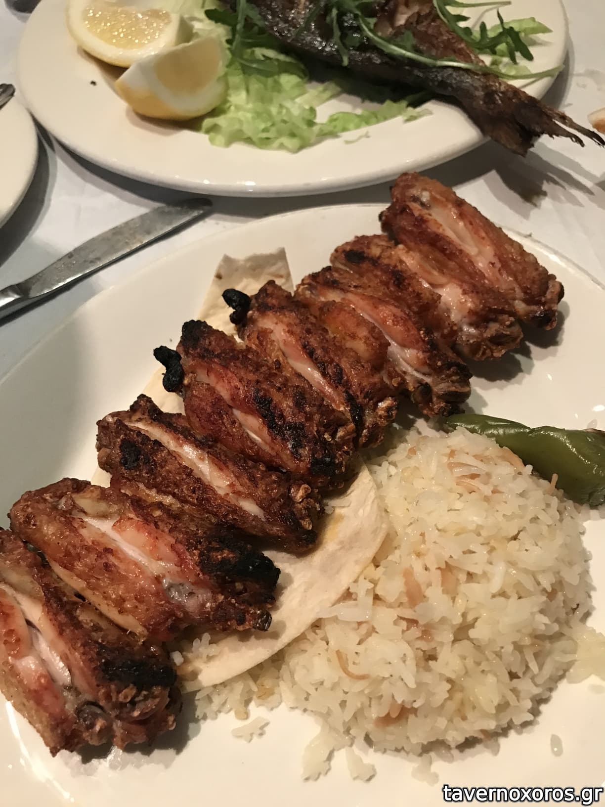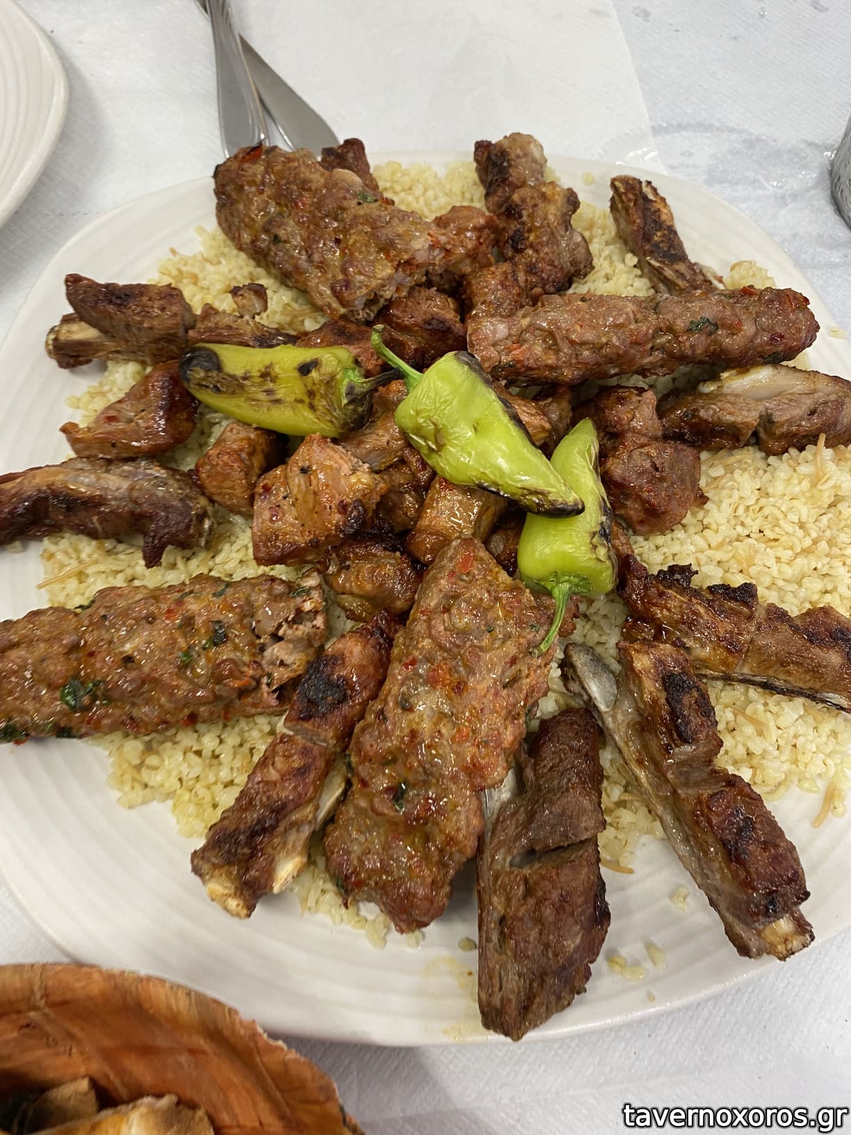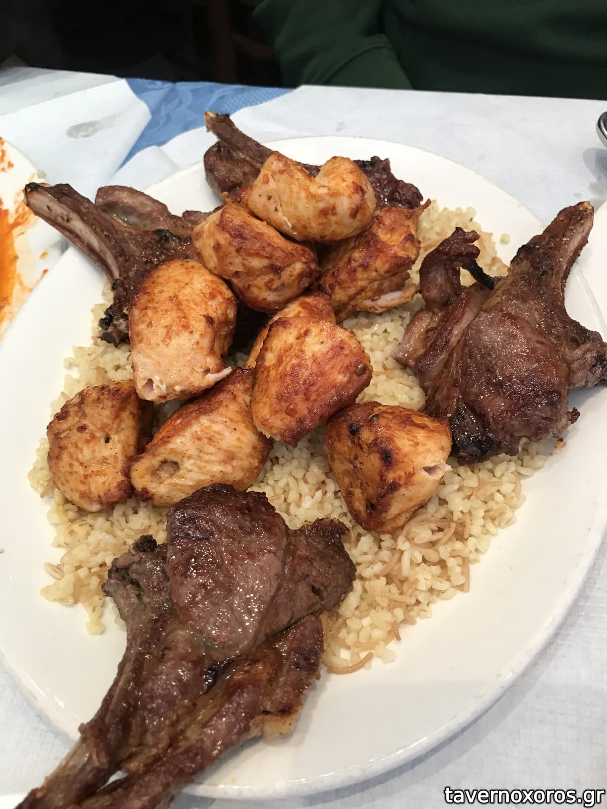 Το μενού είναι λιτό, δεν σερβίρει χοιρινό παρά μόνο αρνί και κοτόπουλο από κρέατα.