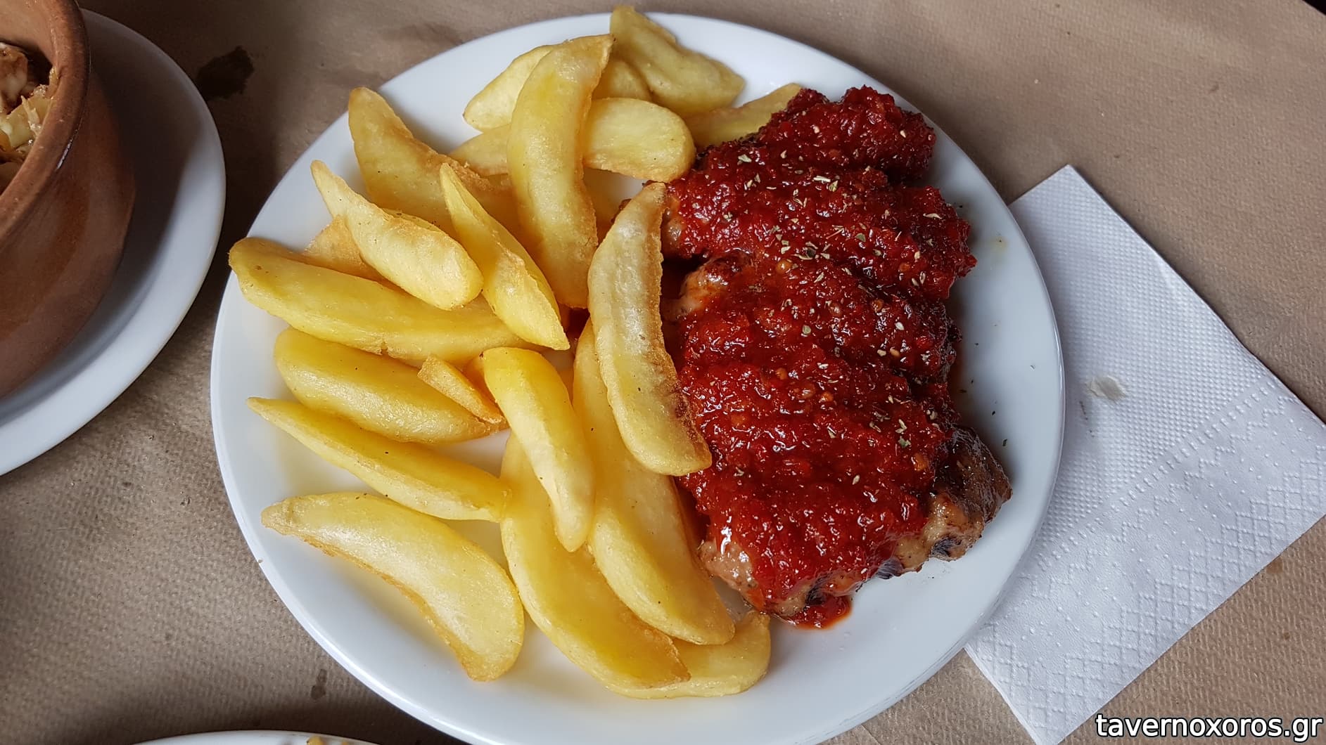 "Σουτζουκάκια με πετμέζι" (οκ, η σάλτσα πρέπει να ήταν Ναουμίδης, πατάτες προκάτ)