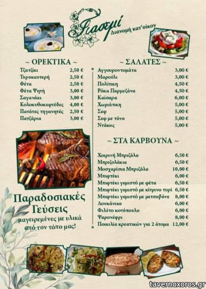 | Λέξεις κλειδιά | #πεζόδρομος, #γαρίδες, #σουπιές, #χταπόδι, #γαύρος, #σαρδέλα, #μπακαλιάρος σκορδαλιά, #γαριδομακαρονάδα, #μουσακάς, #παστίτσιο, #κοκκινιστό, #λεμονάτο, #κοτόπουλο, #ριζότο, #κεφτεδάκια, #μακαρονάδες, #κολοκυθοκεφτέδες, #ντάκος, #χοιρινή, #μοσχαρίσια μπριζόλα, #μπιφτέκι, #λουκάνικο, #ψαρονέφρι, #μπιφτέκι γεμιστό |