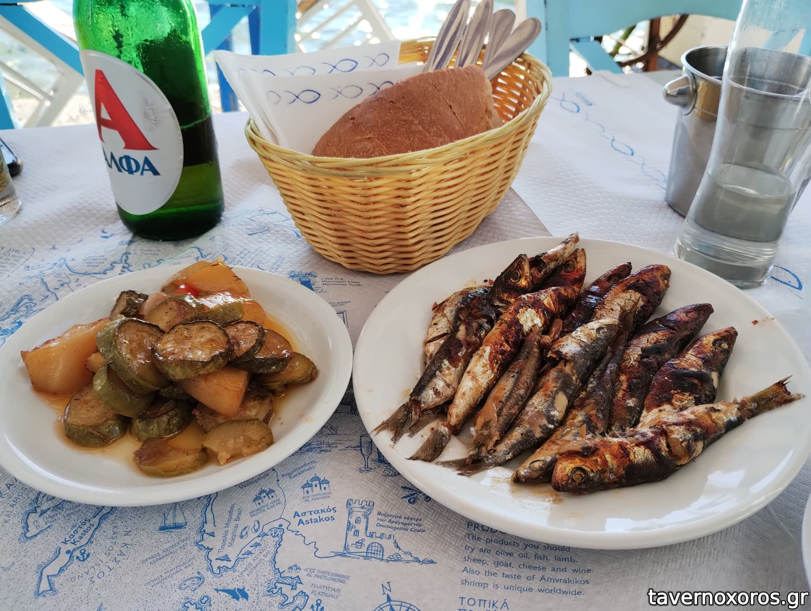 Πολύ όμορφο γραφικό ταβερνάκι, ακριβώς πάνω στο κύμα. Κάτσαμε για γρήγορη μπυριτσα. Με δυο μπύρες μας έφεραν μεζέ ένα πιάτο με τηγανητές σαρδέλες και αγγούρι ντομάτα.