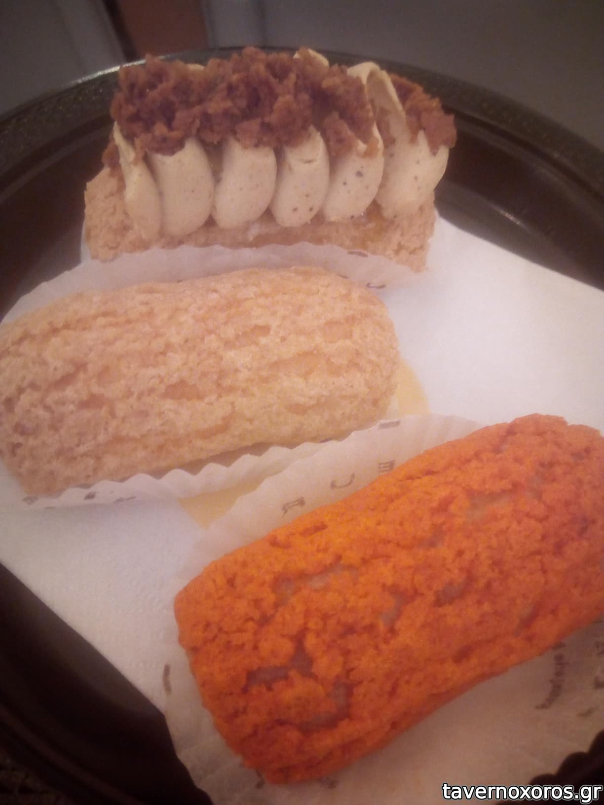 Τριάδα εκλαίρ, από κάτω προς τα πάνω: Πορτοκάλι+Τζίντζερ, κλασικό, και επάνω "Ελληνικό" με γέμιση γιαούρτι και νότες μαστίχας και λιιίγο ελαιόλαδο (το τελευταία ήταν το καλύτερο)