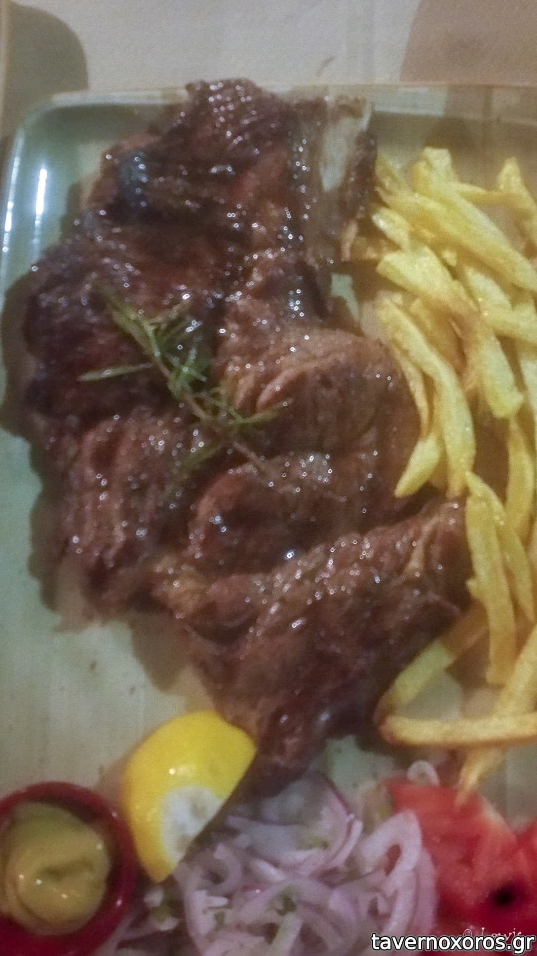 Σπαλομπριζόλα μοσχαρίσια, ψημενη οπως τη ζητήσαμε, ζουμερή, αλλά το κρέας δεν ήταν πολύ καλό.