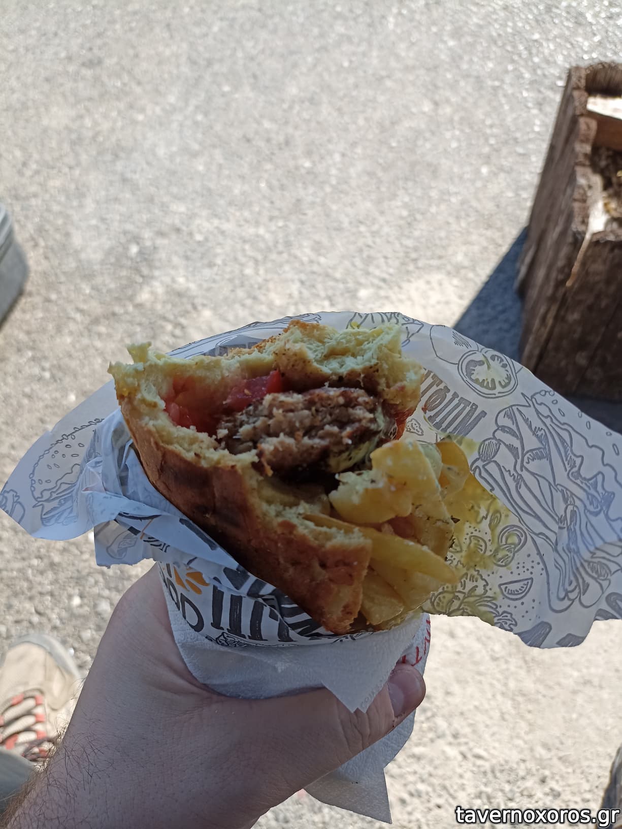Κέλευσμα της Μάρως, Σεπτέμβριος '23. Επιτέλους δηλαδή, γιατί από καιρό το έχω βάλει στο μάτι. Η ώρα ήταν κοντά στο σχόλασμα, οπότε είχε την αναμενόμενη αυξημένη κίνηση (τραπέζια/take away). Μπιφτέκι καλό, αφράτο και ήπιο, χωρίς ανούσιες εντάσεις που τελευταία συναντάς συχνά στους καντινίσιους κιμάδες. Ψωμάκι μεστό και ευμεγέθες, τίμιο σάντουϊτς που γεμίζει απ' άκρη σ' άκρη. Πατάτα προκάτ. Με αλοιφή, στα 3,50€. (Θα ξαναπάρω, γιατί η παντσέτα φάνηκε σοβαρή και χρήζει δοκιμής.)