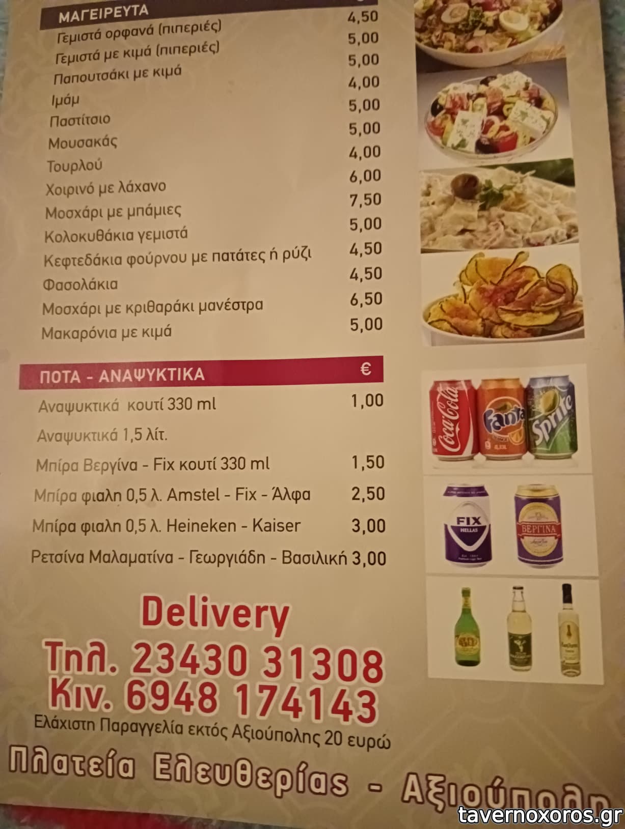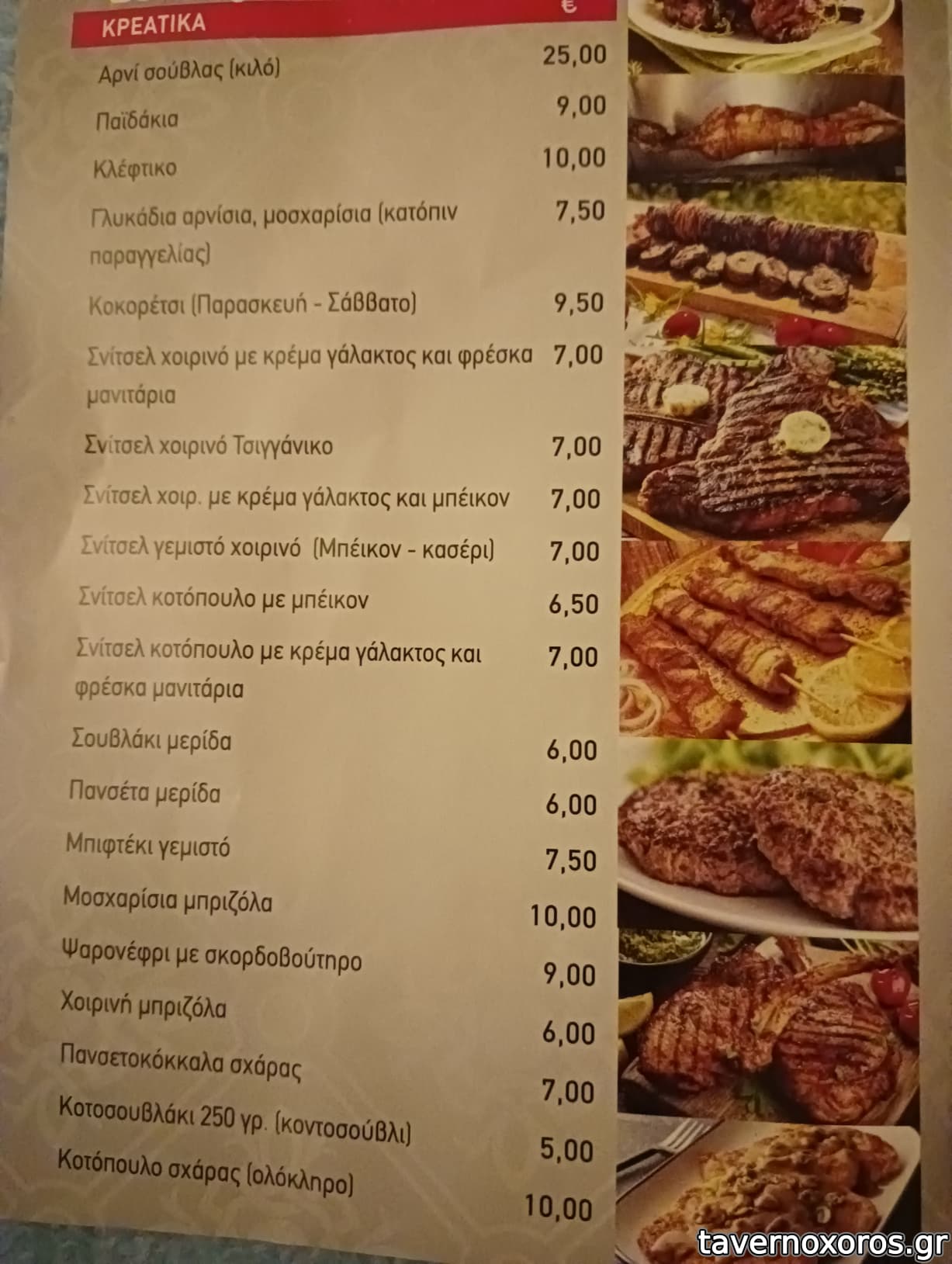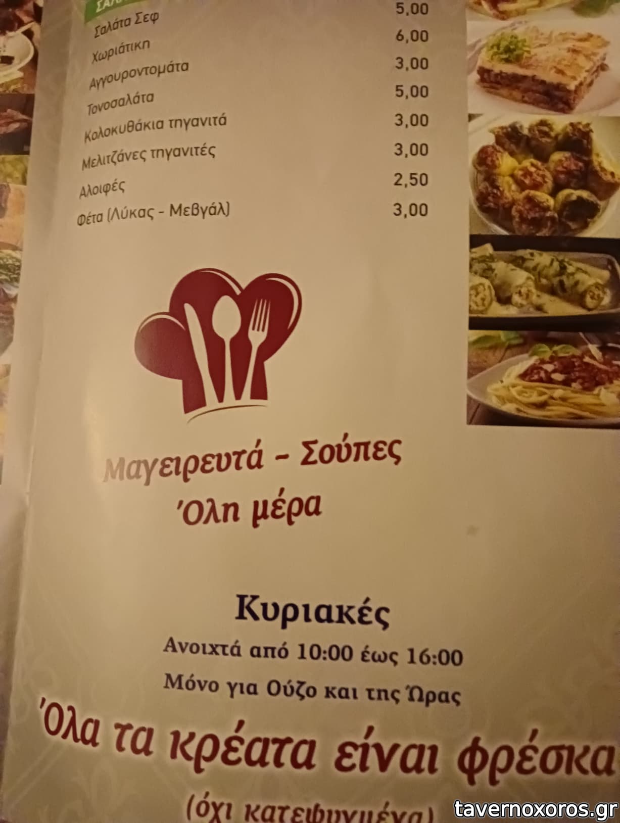 | Λέξεις κλειδιά | #πατσάς, #σούπες, #κοτόπουλο, #μαγειρευτά, #πανσέτα, #σαρδέλα, #κεφτεδάκια, #μουσακάς, #παστίτσιο, #παπουτσάκια, #γεμιστά, #μπάμιες, #φασολάκια, #κοκκινιστό, #γιουβέτσι, #μακαρόνια, #μελιτζάνα τηγανητή, #κολοκυθάκια, #σούβλες, #αρνάκι, #κλέφτικο, #κοκορέτσι, #παϊδάκια, #γλυκάδια, #σνίτσελ, #σουβλάκια, #μπιφτέκι γεμιστό, #μοσχαρίσια μπριζόλα, #ψαρονέφρι, #χοιρινή, #κοτόπουλο σχάρας, #κοντοσούβλι |