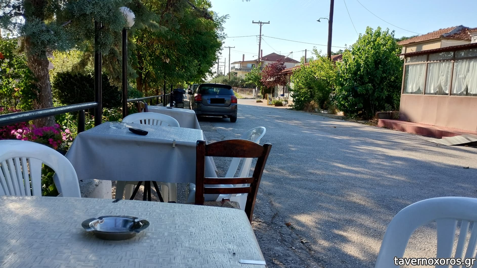 Τα τραπέζια και ο δρόμος μπροστά στο μαγαζί