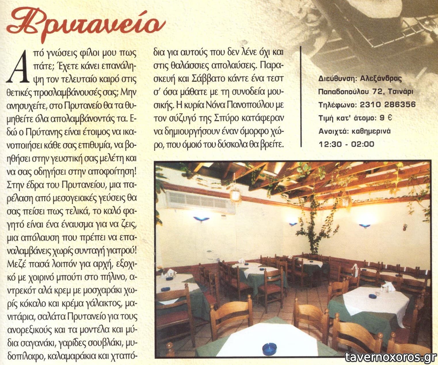 Μετά από παρότρυνση κατοίκου της Άνω Πόλης το προτιμήσαμε από το γνωστό Τσινάρι. Άμα θες χώρο πας εκεί, άμα θες να ευχαριστηθείς φαΐ πας στο Πρυτανείο.