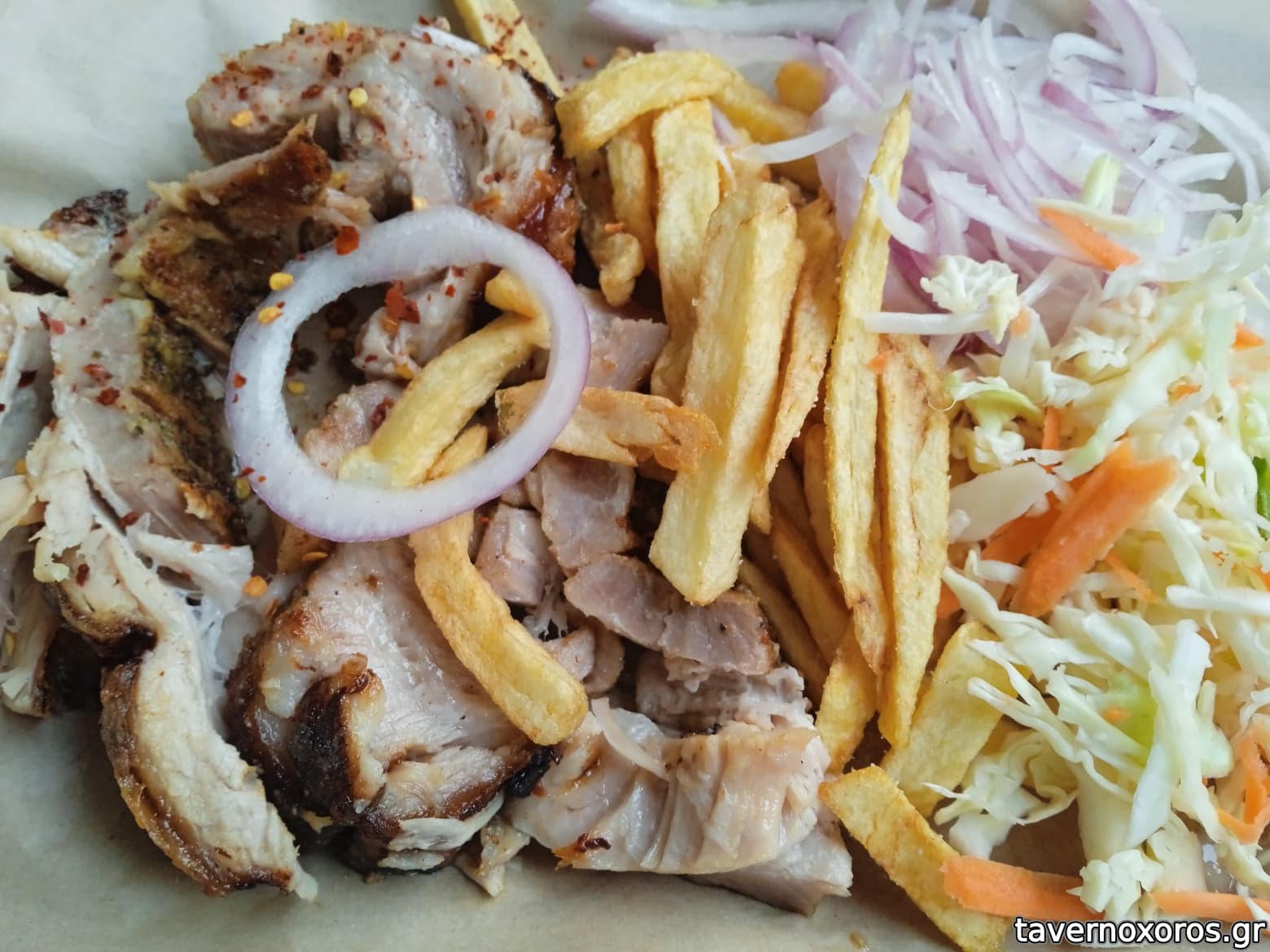 - Κοντοσούβλι χοιρινό, μέτριο, ωραία μπαχάρια, αλλά στεγνό το κρέας