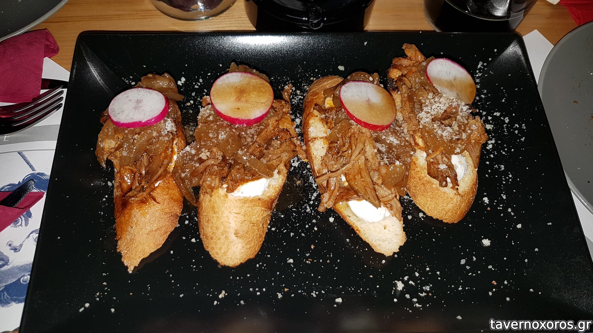 "Μπρουσκέτες με pulled pork" (το χοιρινό δε μου άρεσε)
