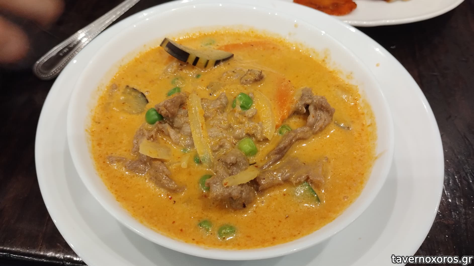 Κόκκινο κάρυ (καλό. Χωριστά είχε και ρύζι ατμού)