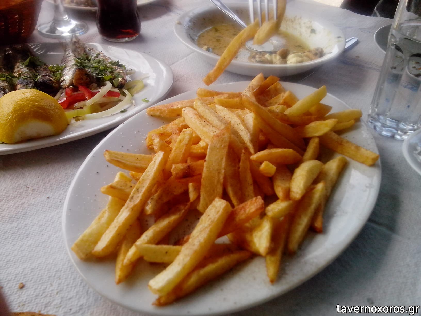2 χωριάτικες (κανονική), 1 πατάτες (χειροποίητη μπαμπάτσικια, πολλή καλή), 1 κολοκυθάκια (άξια), 1 σκορδαλιά (με λίγο σκόρδο και μαγιονέζα, not my cup of tea σίγουρα), 1 πιπεριά καυτερή (καλή), 1 καλαμαράκια (όχι κάτι το ιδιαίτερο, αλλά καλό), 1 γαύρο (νόστιμος), 1 μύδια τηγανητά (διπλά με κουρκούτι, απ' τα πιο ωραία πιάτα), 1 σκουμπρί (πολύ νόστιμο). Ήπιαμε 3 200ml τσίπουρο χύμα άνευ (καλό).