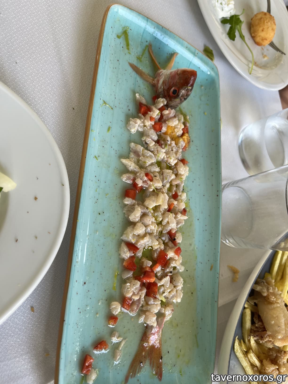Μόνο το ταρτάρ μπαρμπούνι ήταν οπτικά ωραίο αλλά γευστικά αδιάφορο.