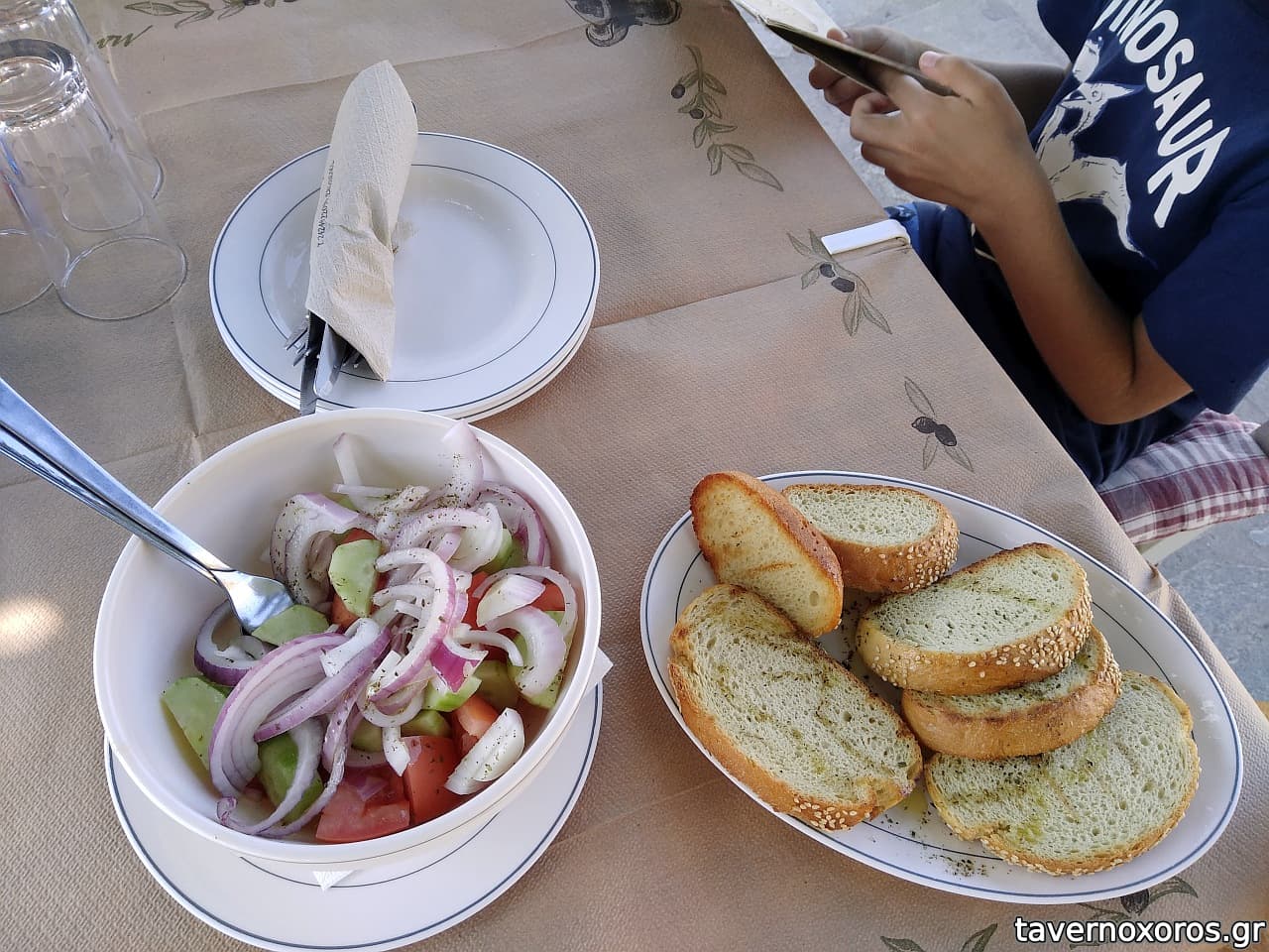 Αγγουροντομάτα (πενιχρή) και ψωμάκια με λαδορίγανη (ΟΚ)