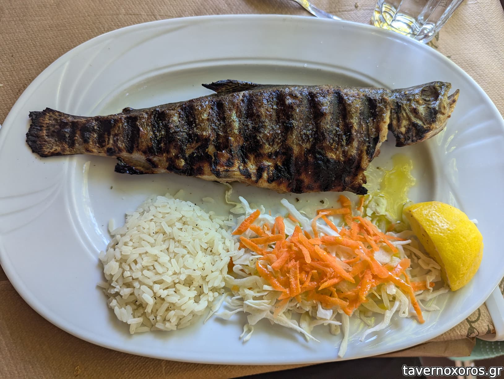 Πέστροφα ψητή (πολύ καλή, σωστά ψημένη, γαρνιτούρα διεκπεραιωτική)