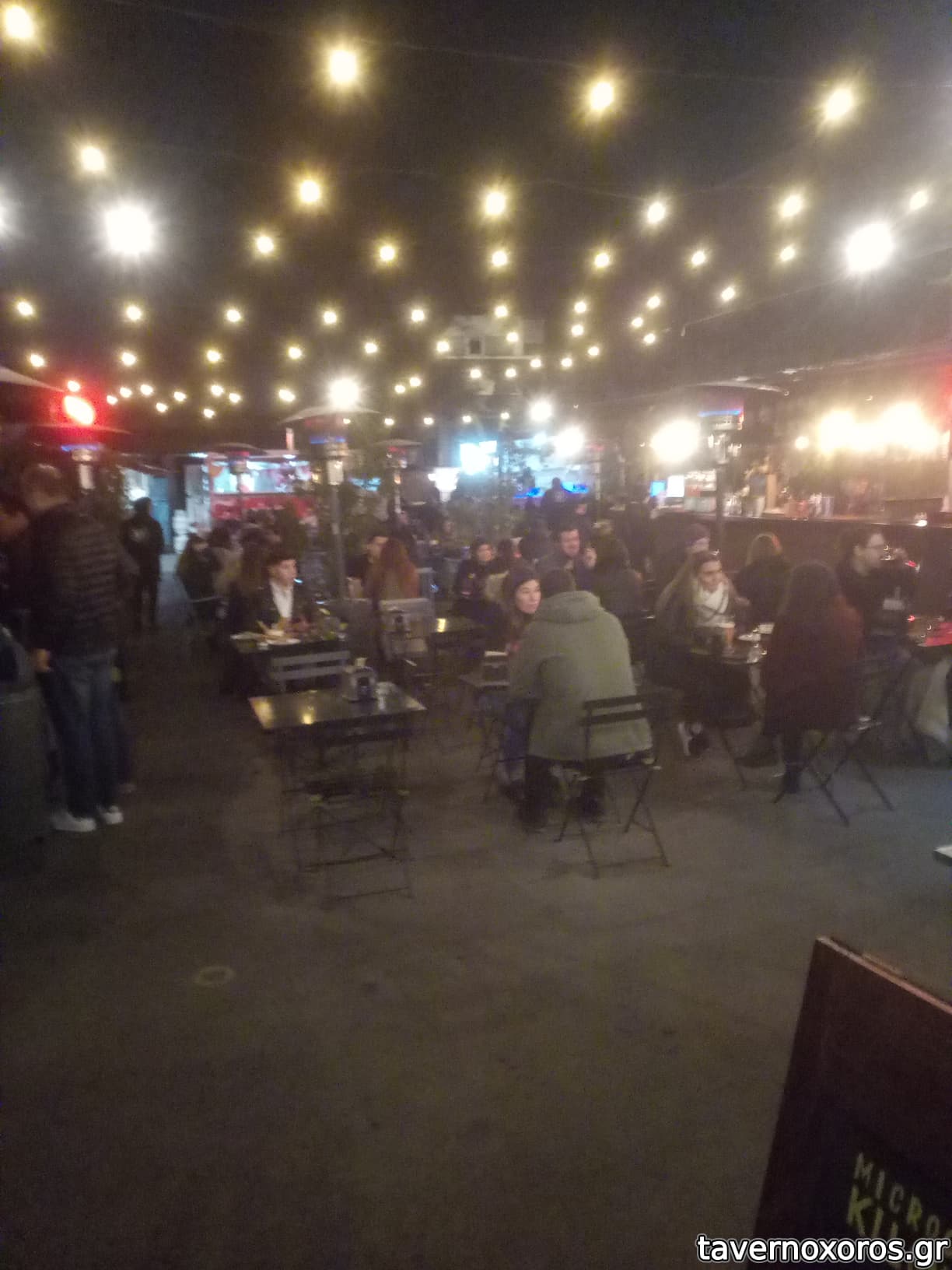 Αυλή με διάφορα food trucks και μπύρες.
