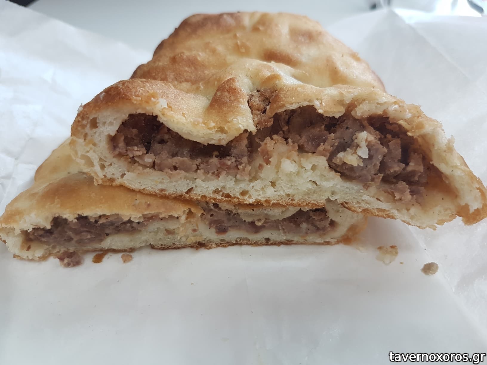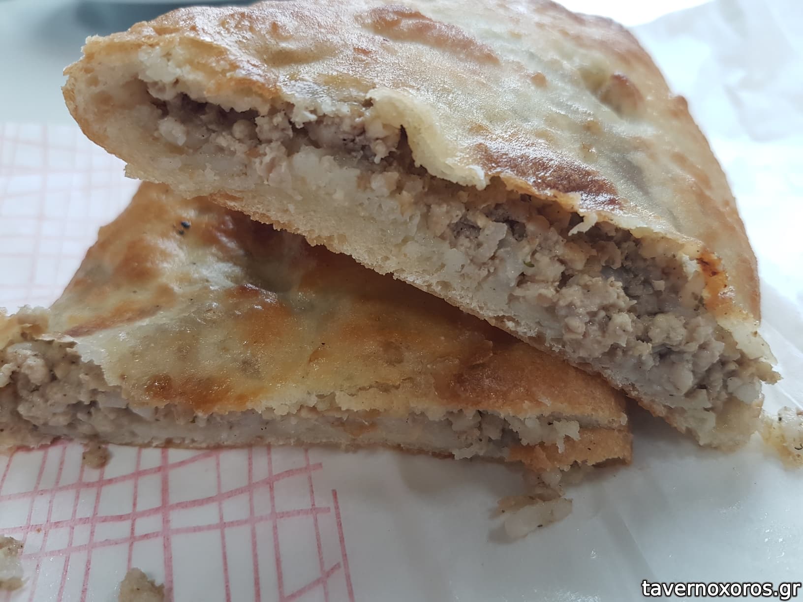Πιροσκί φούρνου με κιμά (Περίεργο γιατί είναι πολύ στεγνό κι επίσης γιατί έχει μόνο πιπέρι, με έντονη γεύση. Τελικά μού άρεσε.)