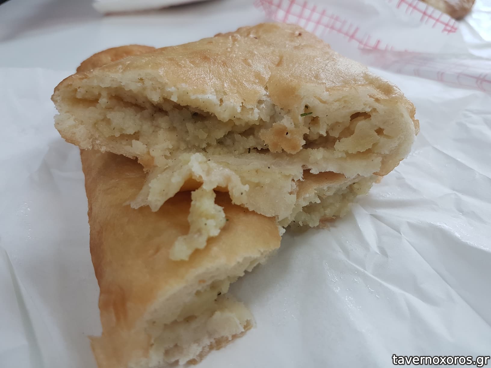 Πιροσκί τηγανητό με πατάτα (καλό, η ζύμη όχι τόσο του γούστου μου, αλλά η γέμιση καλή)