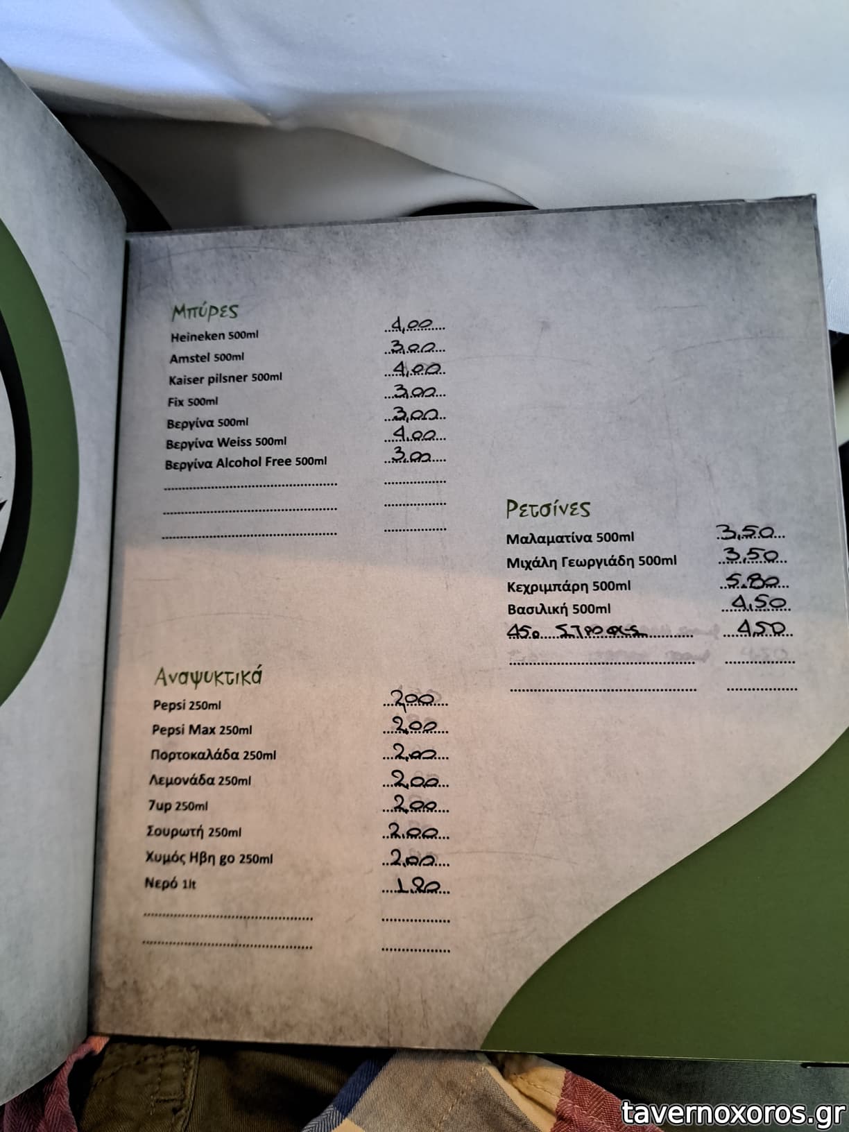 ΤΙΜΕΣ: τα παραπανω +3 μισολιτρες μπυρες και ενα ουζο 70ε, 23ε/ατομο