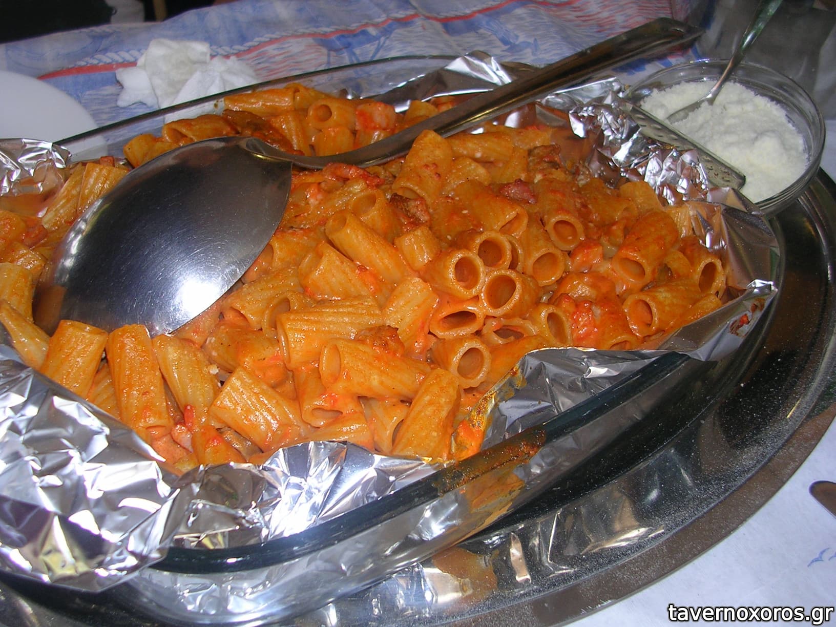 -1 μακαροναδα με σαλτσα βοτκας. Πεννες με μια κοκκινη σαλτσα και αμυδρη πικραδα που ισως και να θυμιζε βοτκα, με αρκετη φαντασια. Τεραστια μεριδα και παλι, σε ενα πυρεξ τυλιγμενο με αλουμινοχαρτο. Δεν με τρελλανε η σαλτσα, αλλα μαρεσε πολυ το μαγειρεμα των ζυμαρικων. Αλντεντε οσο πρεπει.